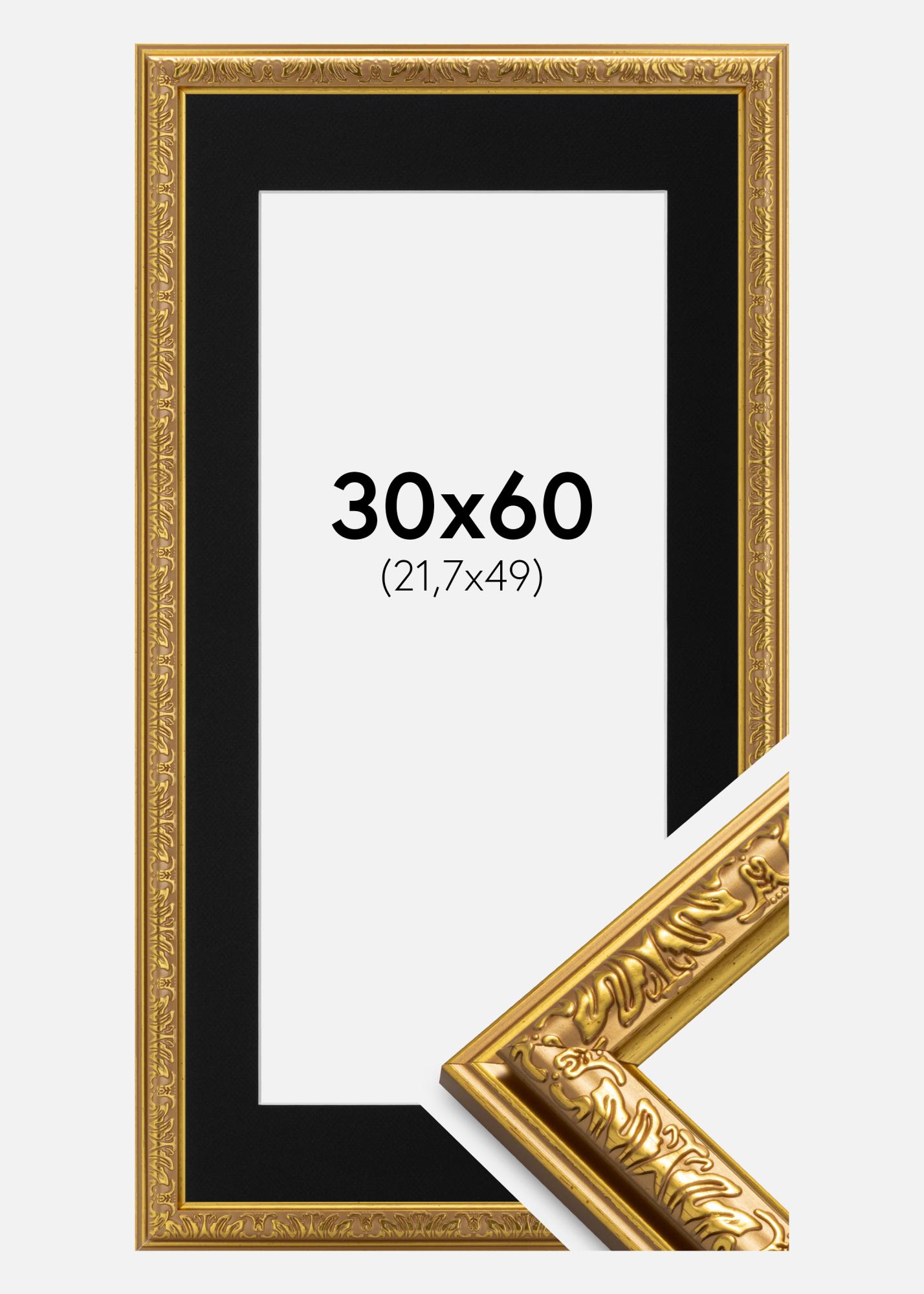 Frame Nostalgia Gold 30x60 cm - Picture Mount Black 22.7x50 cm