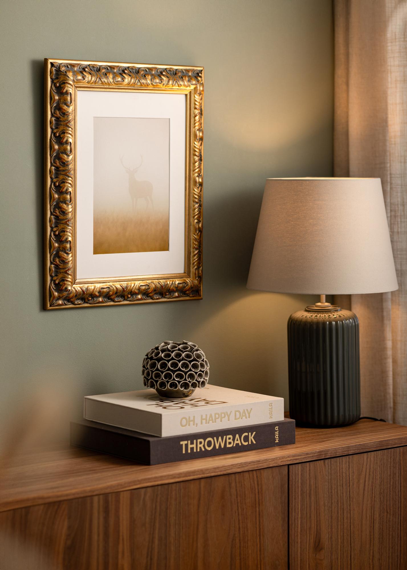 Whether you want to frame a family photo, a piece of art, or a mirror, this picture frame will highlight the motif in the best way. The ornate gold frame with its baroque details becomes a beautiful framing that draws attention and creates a sophisticated atmosphere in your home. Choose Frame Odin Gold/Red to give your pictures the framing they deserve.