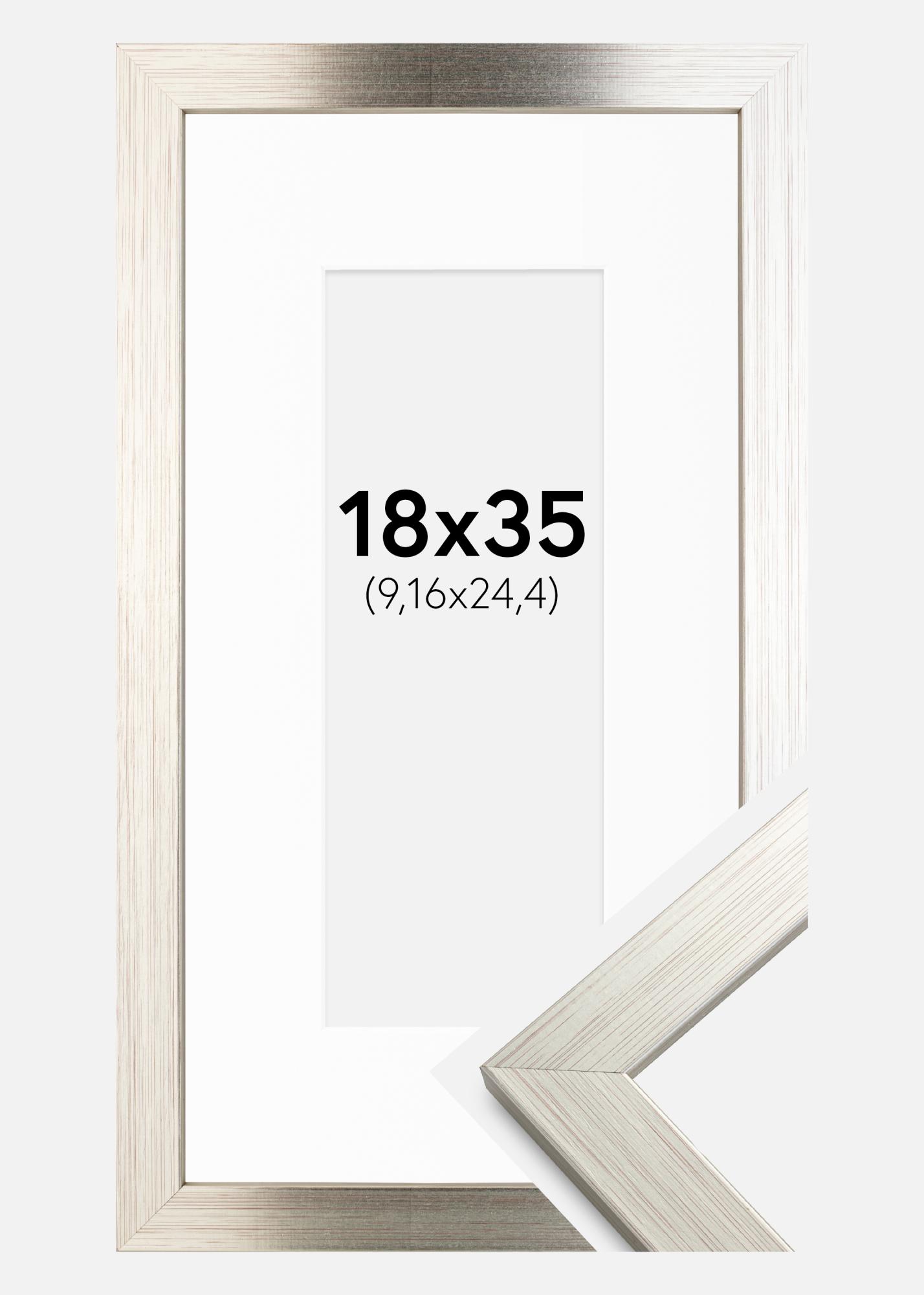 Frame Silver Wood 18x35 cm - Picture Mount White 4x10 inches