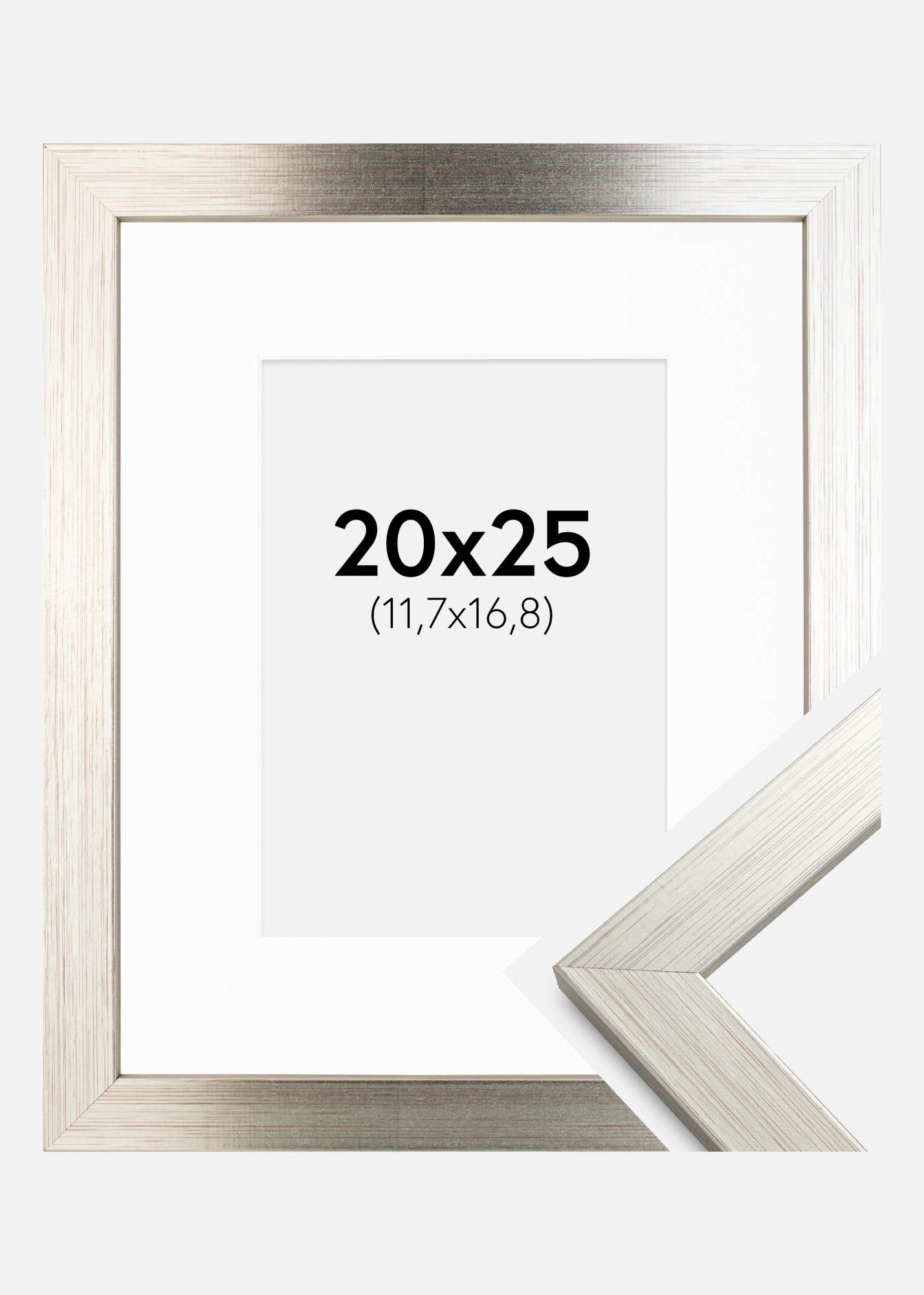 Frame Silver Wood 20x25 cm - Picture Mount White 5x7 inches