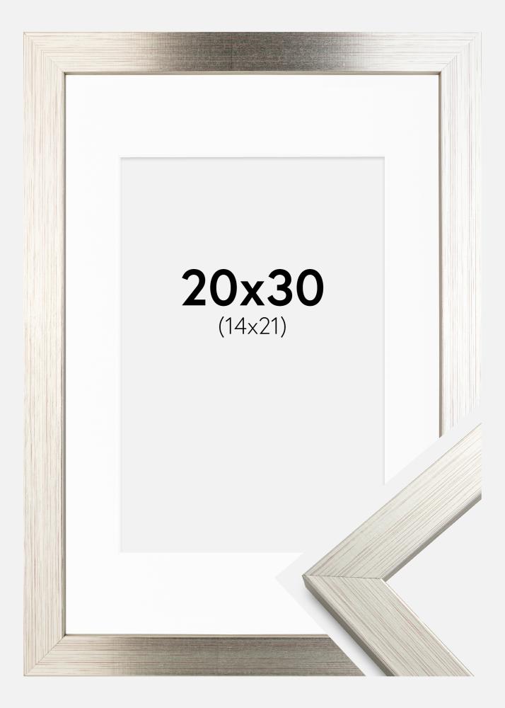 Frame Silver Wood 20x30 cm - Picture Mount White 15x22 cm