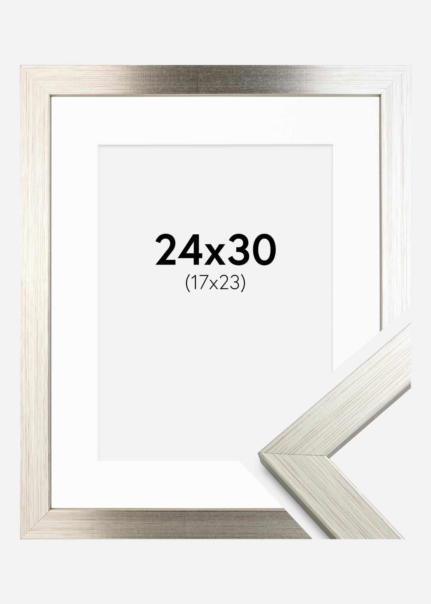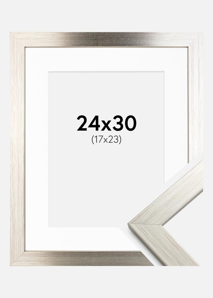 Frame Silver Wood 24x30 cm - Picture Mount White 18x24 cm