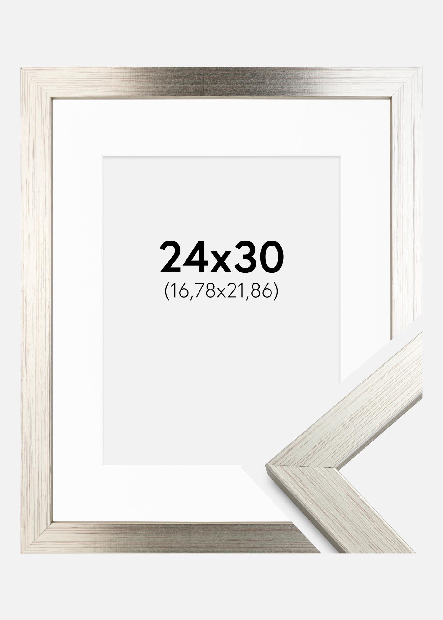Frame Silver Wood 24x30 cm - Picture Mount White 7x9 inches