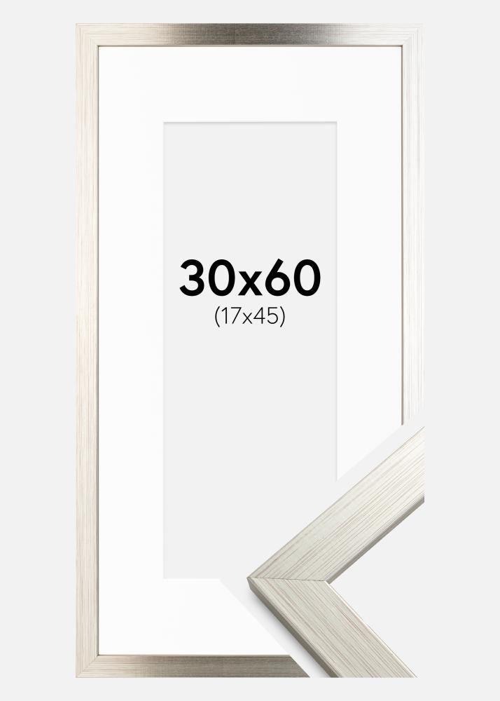 Frame Silver Wood 30x60 cm - Picture Mount White 18x46 cm