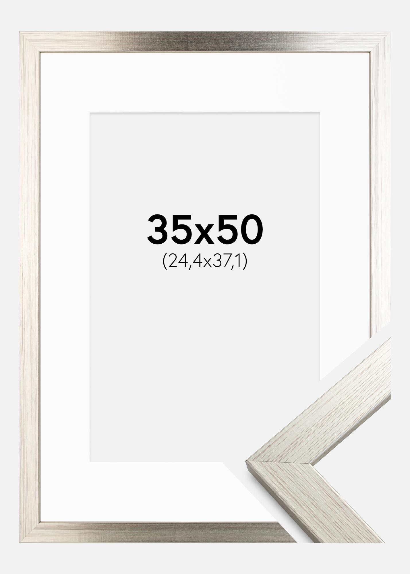 Frame Silver Wood 35x50 cm - Picture Mount White 10x15 inches