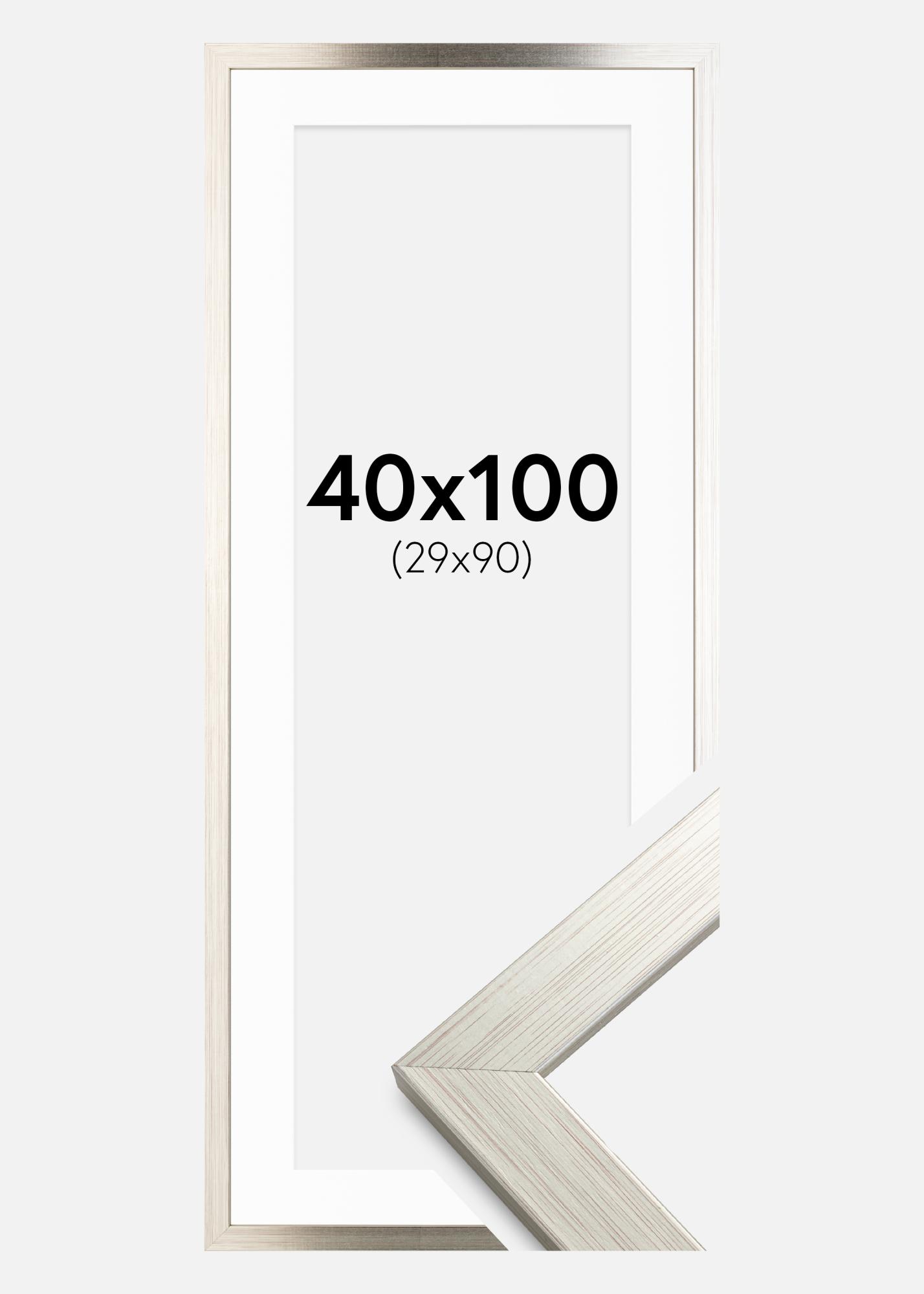 Frame Silver Wood 40x100 cm - Picture Mount White 30x91 cm