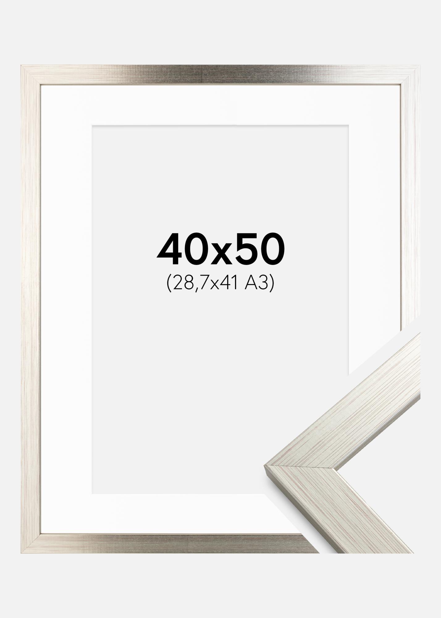 Frame Silver Wood 40x50 cm - Picture Mount White 29.7x42 cm (A3)