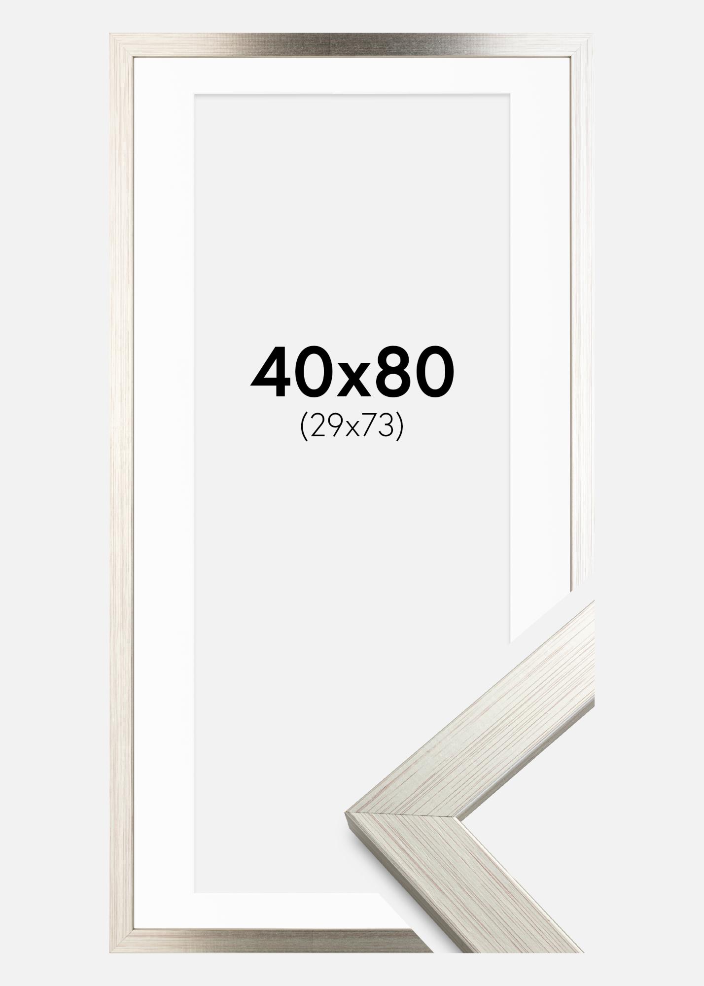 Frame Silver Wood 40x80 cm - Picture Mount White 30x74 cm
