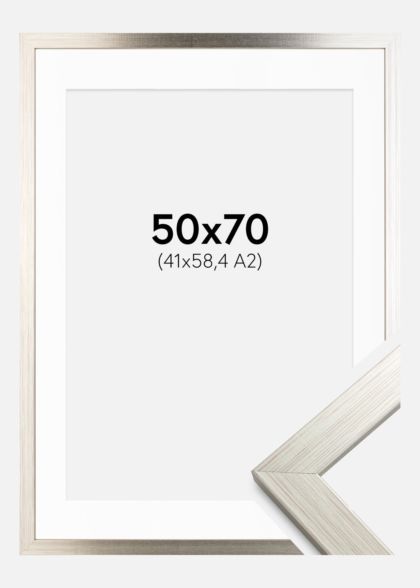 Frame Silver Wood 50x70 cm - Picture Mount White 42x59.4 cm (A2)