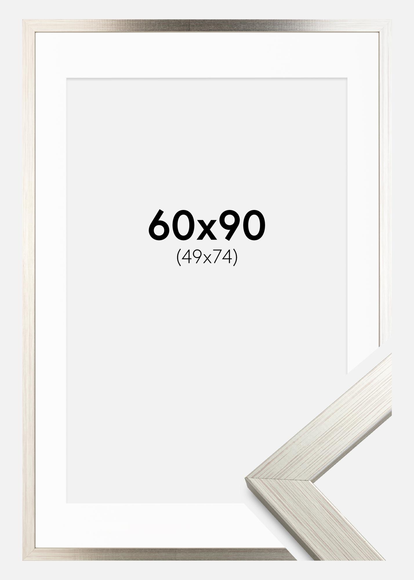 Frame Silver Wood 60x90 cm - Picture Mount White 50x75 cm