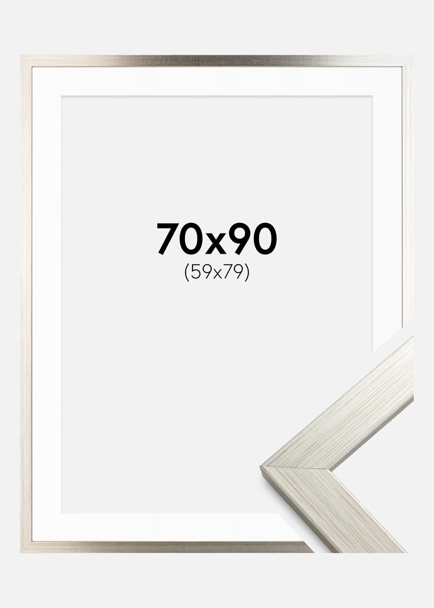 Frame Silver Wood 70x90 cm - Picture Mount White 60x80 cm