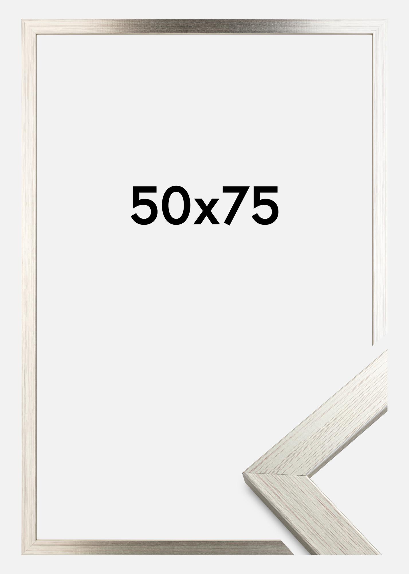 Add a touch of elegance to your walls with this stylish silver-colored frame, perfect for showcasing your favorite pictures or artworks. With dimensions of 50 x 75 cm, it is suitable for both portrait and landscape formats, thanks to the practical metal hangers on the back.