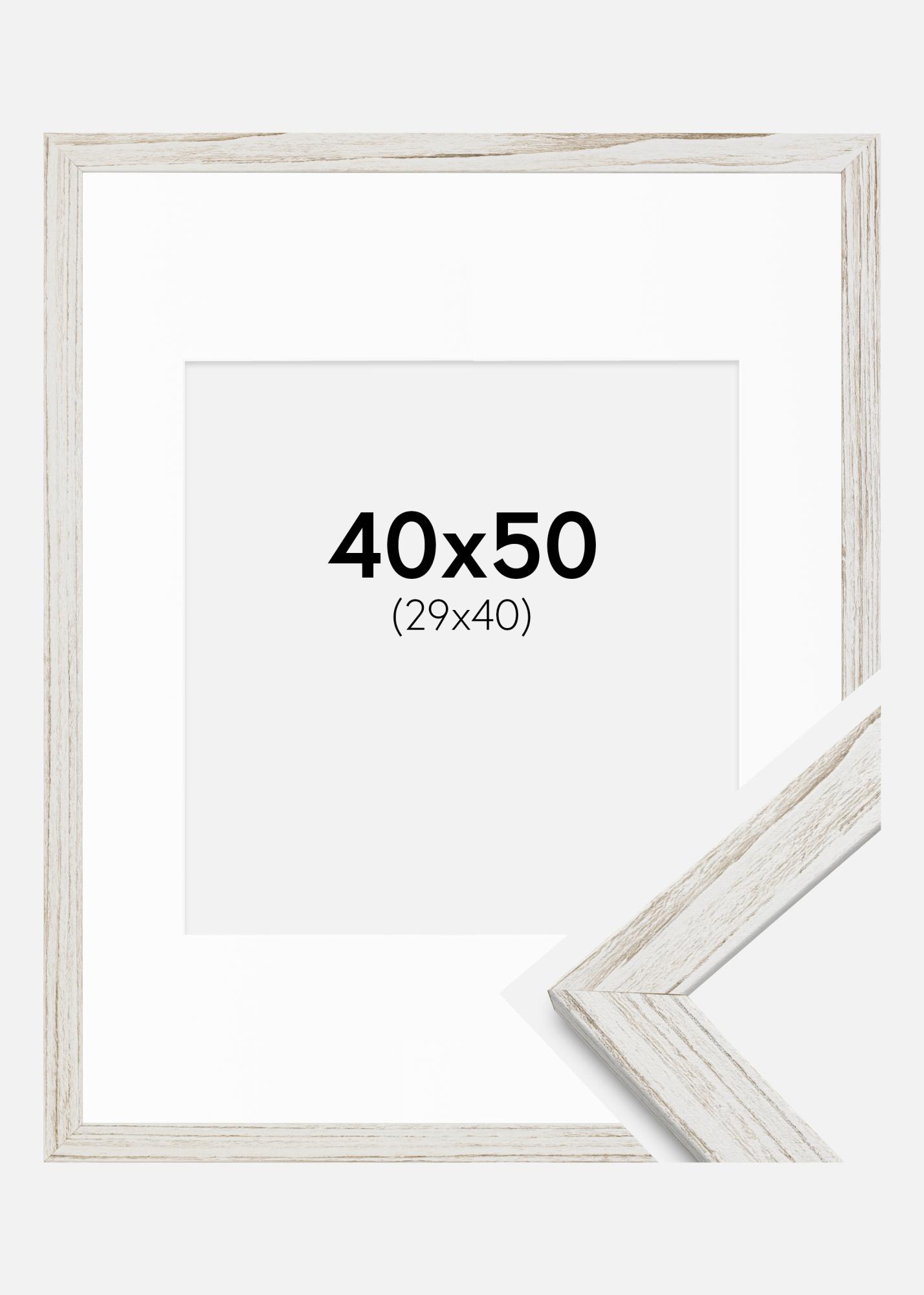 Transform your images into artworks with our elegant frame in white color, complete with a sleek mat. This frame is designed to fit images in the size 30x41 cm and has a total outer dimension of 42x52 cm. With a width of 20 mm and a depth of 14 mm, it offers a robust and yet sophisticated framing for your favorite pictures.