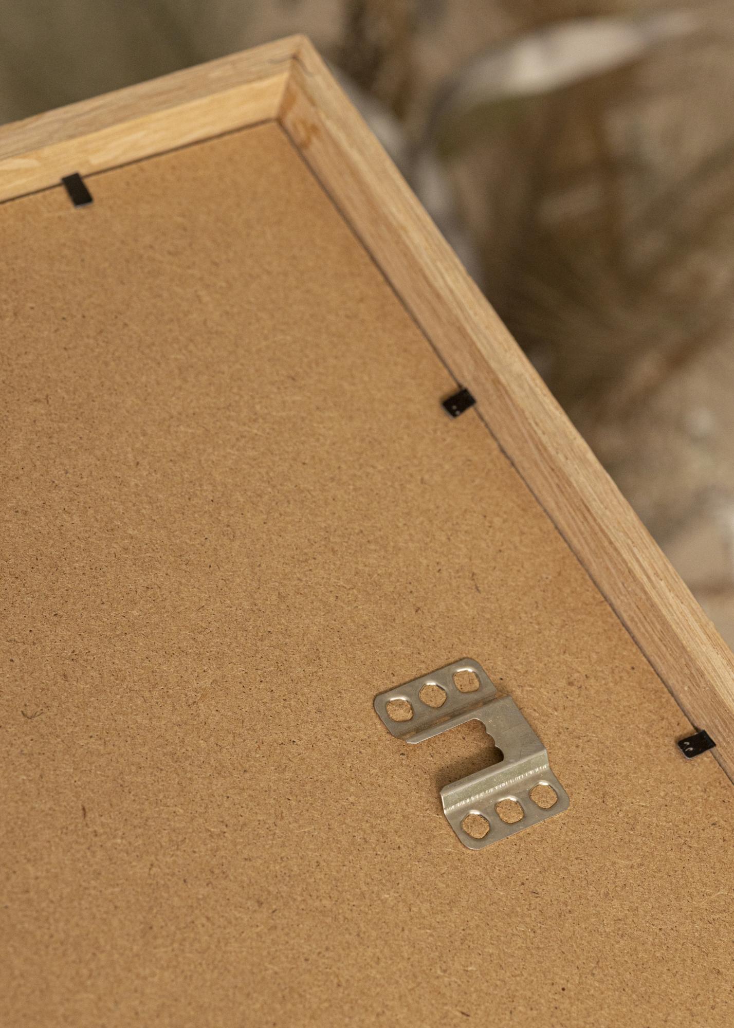 This frame is equipped with acrylic glass, which is a lighter and more durable alternative than real glass, so perfect for spaces where you’re looking for something a little tougher, or if you just want to reduce the weight of the piece you’re hanging. The picture frame's stable back is made of brown MDF and equipped with wall hangers for both vertical and horizontal hanging. You easily put your image inside by bending up the metal pins that hold the back in place, placing the contents in the frame, and then bending the metal pins back down. The frame has a fold depth (inner depth) of 2 mm, which means that it’s also possible to complete your image with a stylish mount.