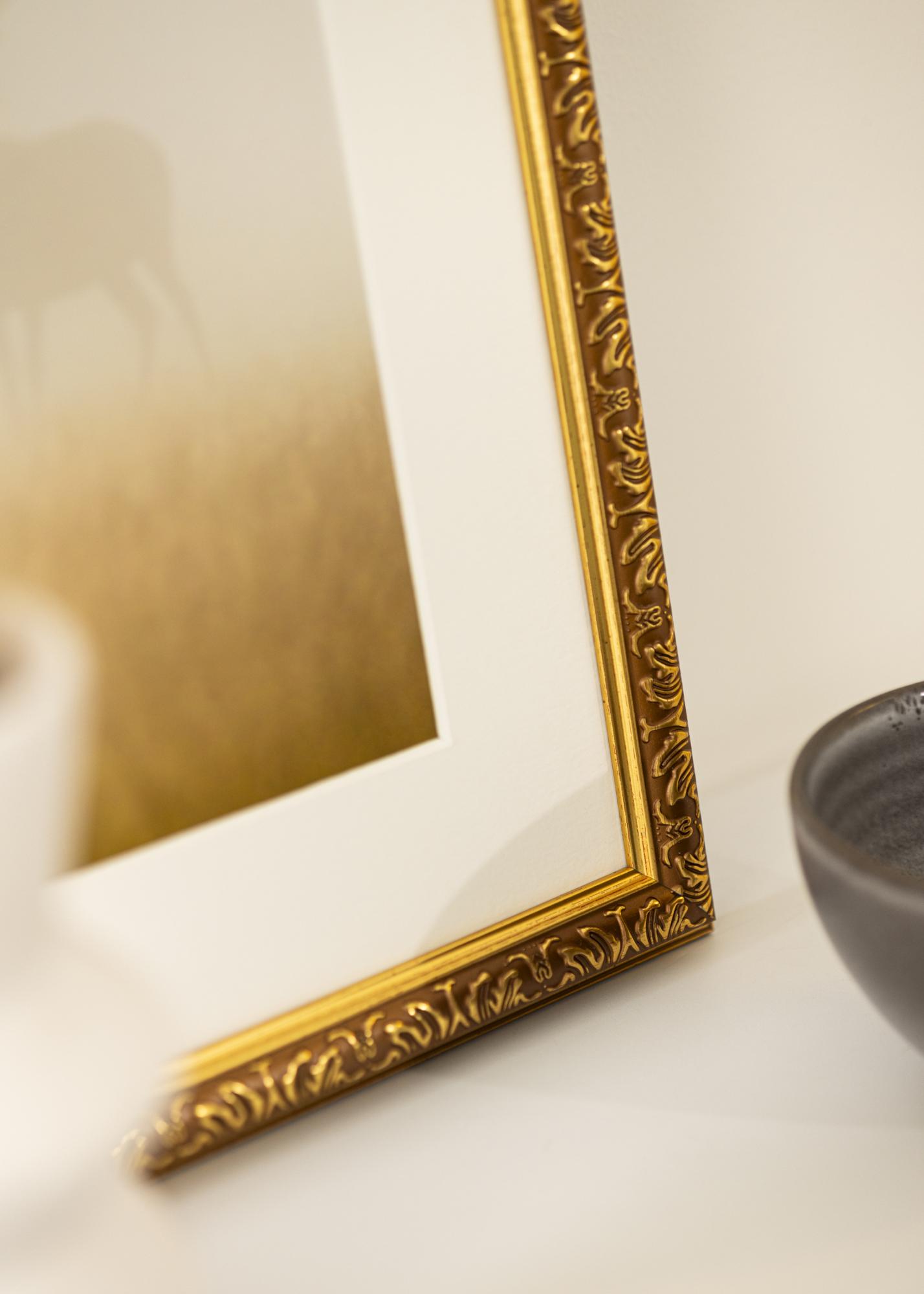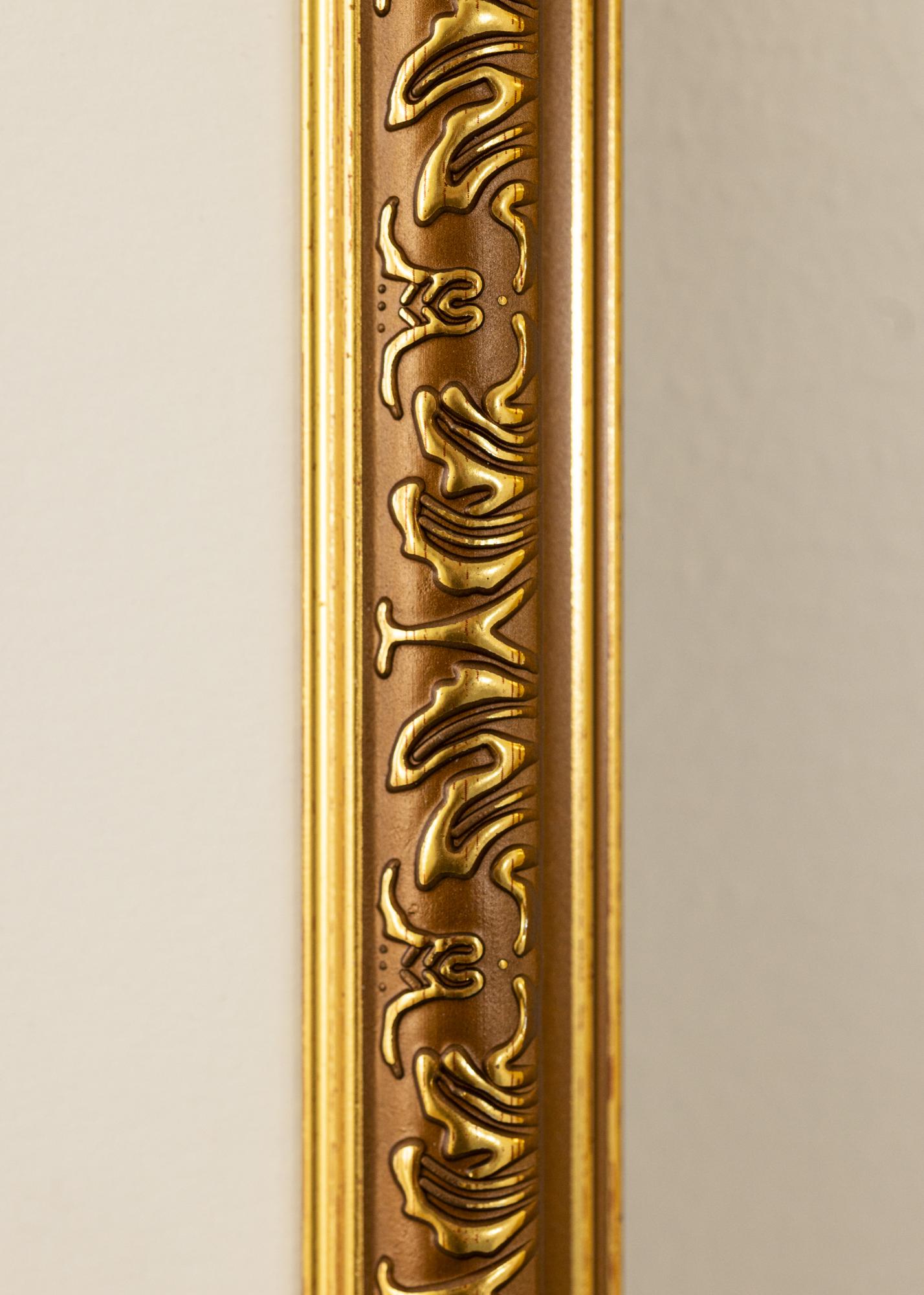 This gold photo frame is a perfect combination of classic elegance and modern functionality. With its size of 60x80 cm, it is ideal for highlighting your favorite subjects, whether it's a piece of art or a photograph. The luxurious gold finish and the decorative, ornate details along the inner edge of the frame provide a sophisticated and timeless feel that fits perfectly in both classic and elegant interior styles.