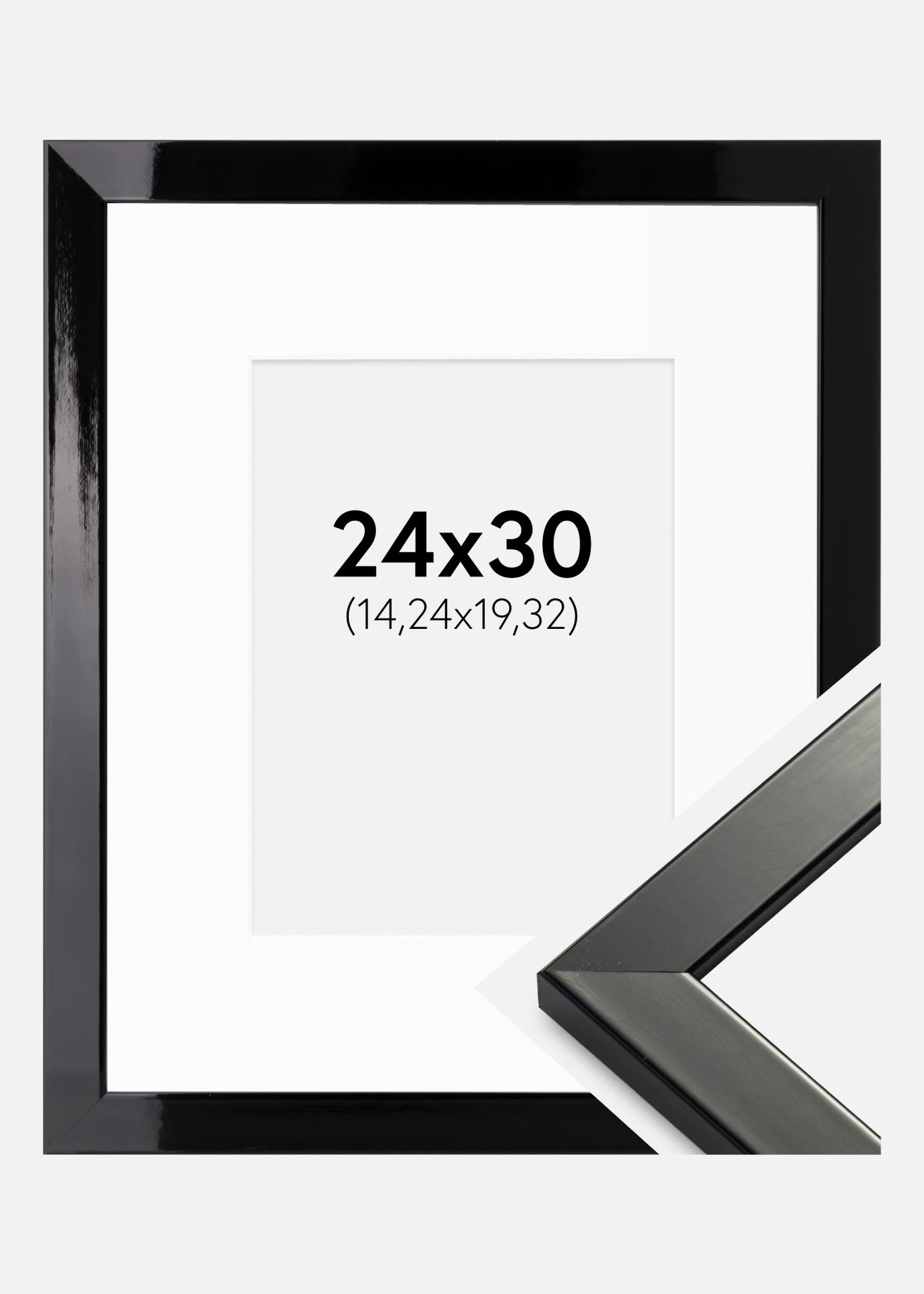Frame Uppsala Black High gloss 24x30 cm - Picture Mount White 6x8 inches