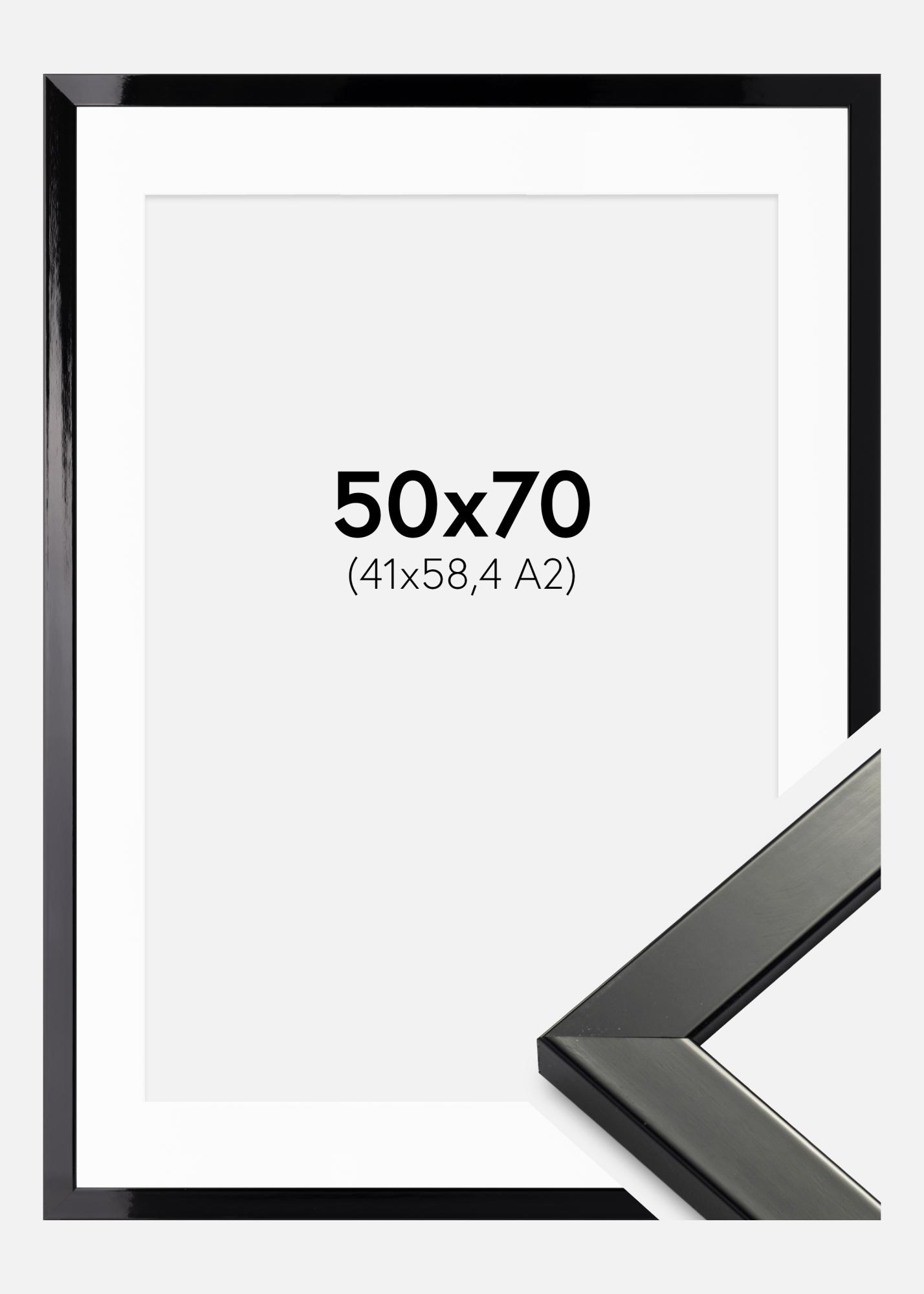Frame Uppsala Black High gloss 50x70 cm - Picture Mount White 42x59.4 cm (A2)