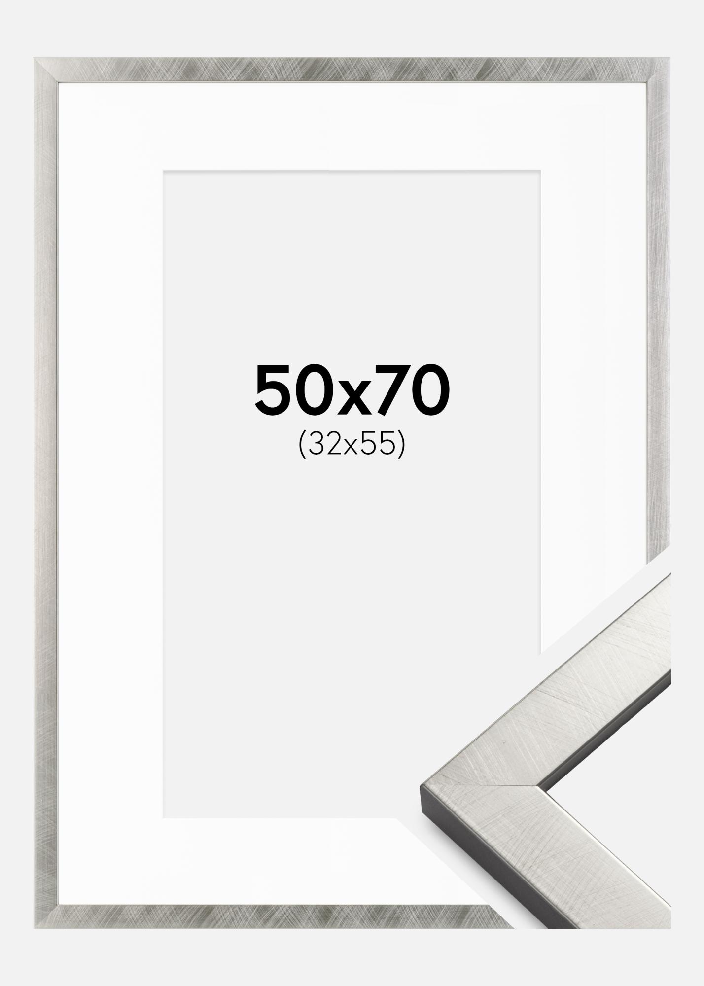 Frame Uppsala Silver 50x70 cm - Picture Mount White 33x56 cm