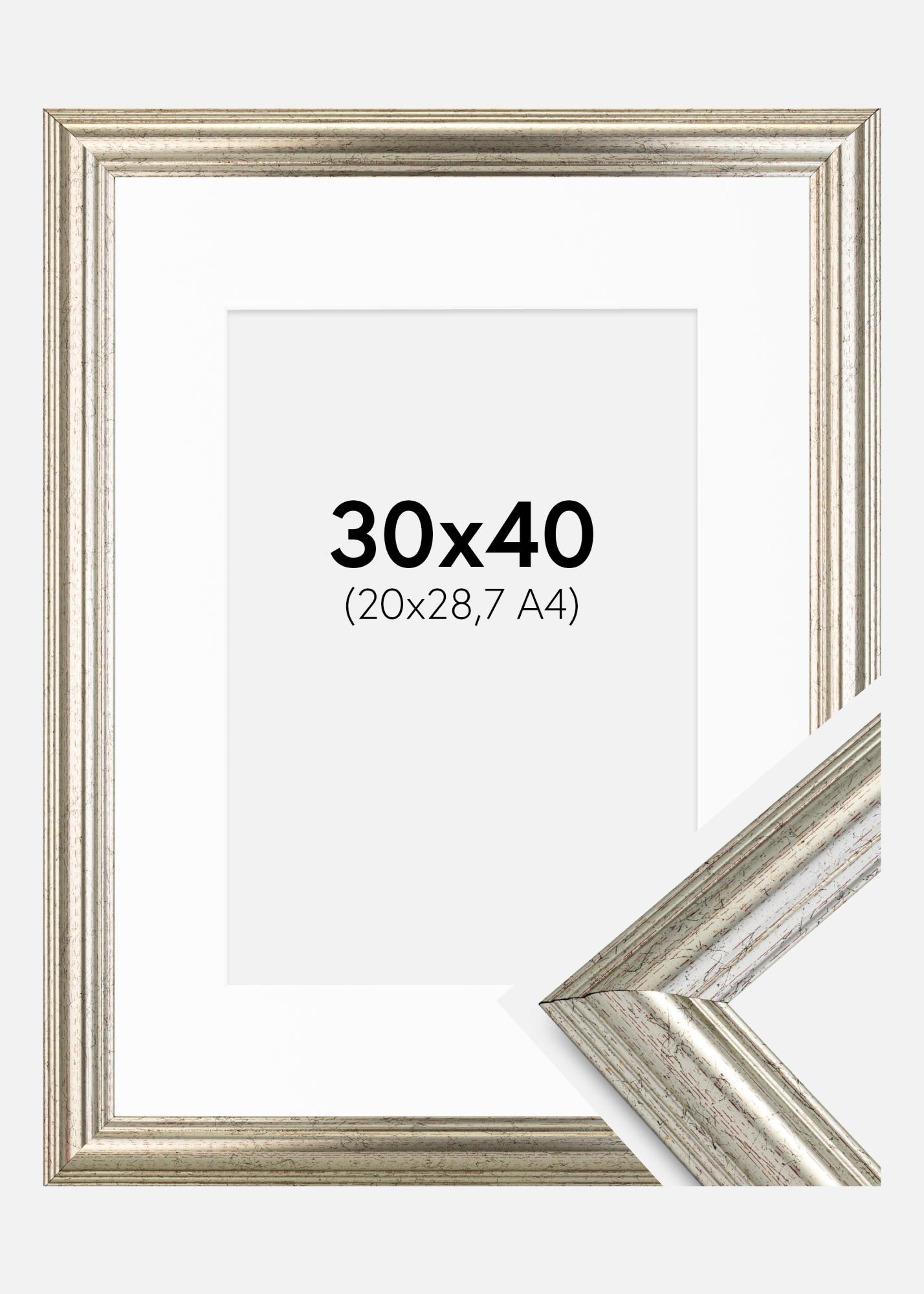 Frame Västkusten Silver 30x40 cm - Picture Mount White 21x29.7 cm (A4)