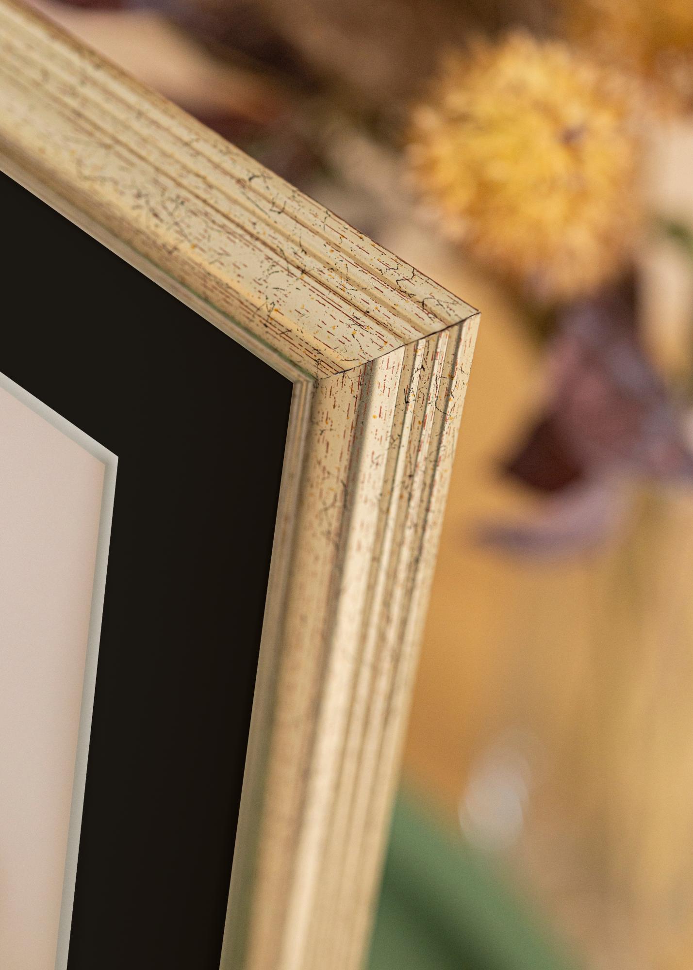 Package including picture frame and matching black mount. The product image shows the dimensions of the frame (indicated in bold) and the inner dimensions of the mount (indicated in brackets). Note that the inner dimensions of the mount should be 1 cm smaller than the image size.
