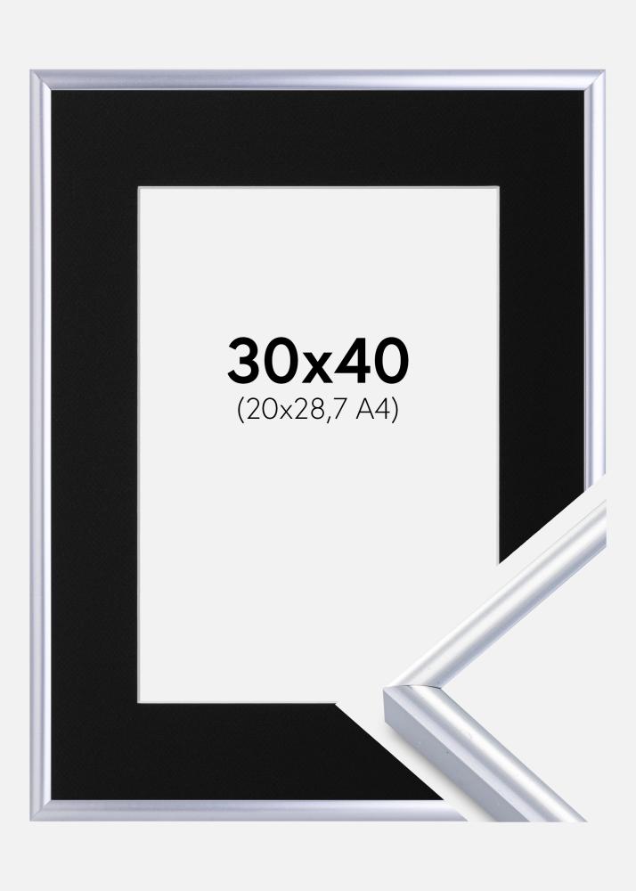 Frame Victoria Silver 30x40 cm - Picture Mount Black 21x29.7 cm (A4)