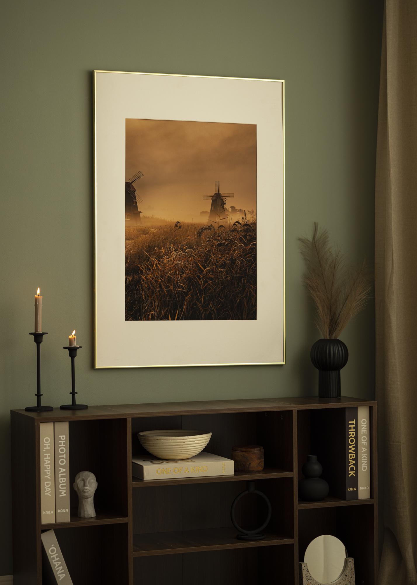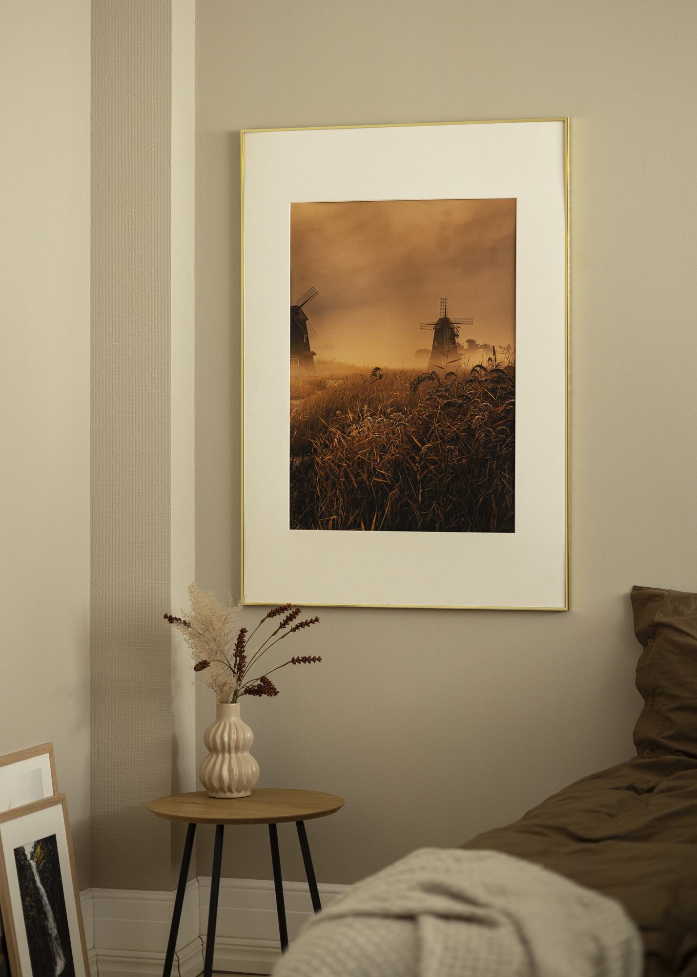 Visby is a thin gold frame with a glossy finish that will give your paintings a very sleek appearance. The frame's slim design, with a frame width of only 6.5 mm, allows your subjects to be fully focused. It is perfect when you want to frame wedding photos, pictures of the children, or an extra special poster.