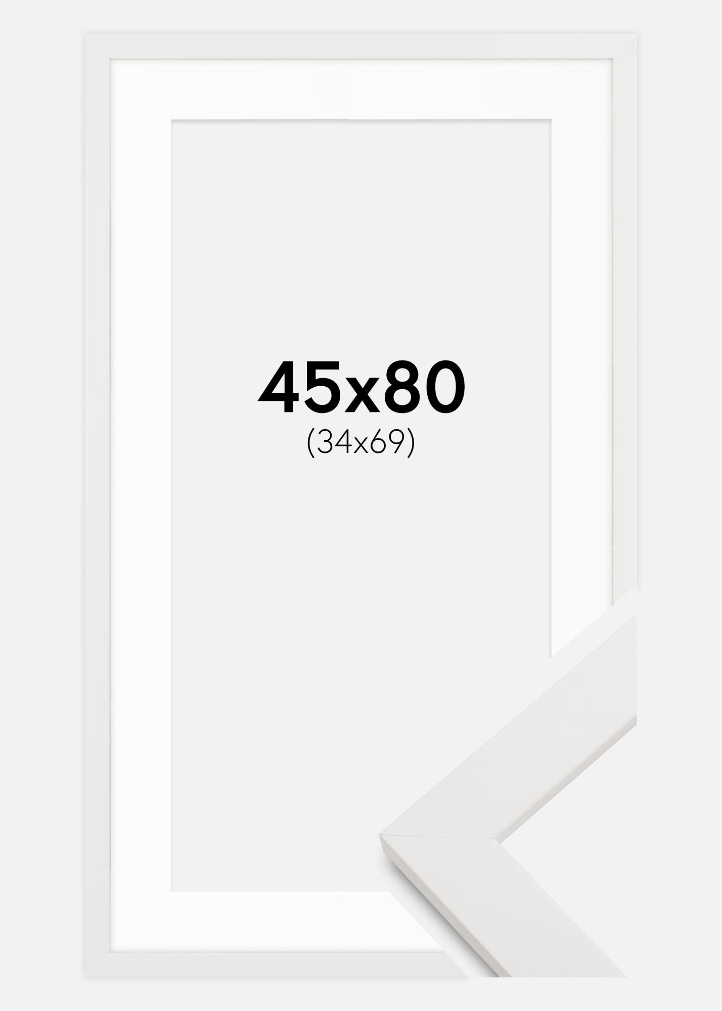 Transform your photos into artworks with our elegant frame in white finish, complete with a sleek mat. This frame is designed to fit images sized 35x70 cm and has a total outer dimension of 48.4x83.4 cm. With a width of 22 mm and a depth of 15 mm, the frame provides a subtle yet sophisticated framing that highlights your favorite motifs.