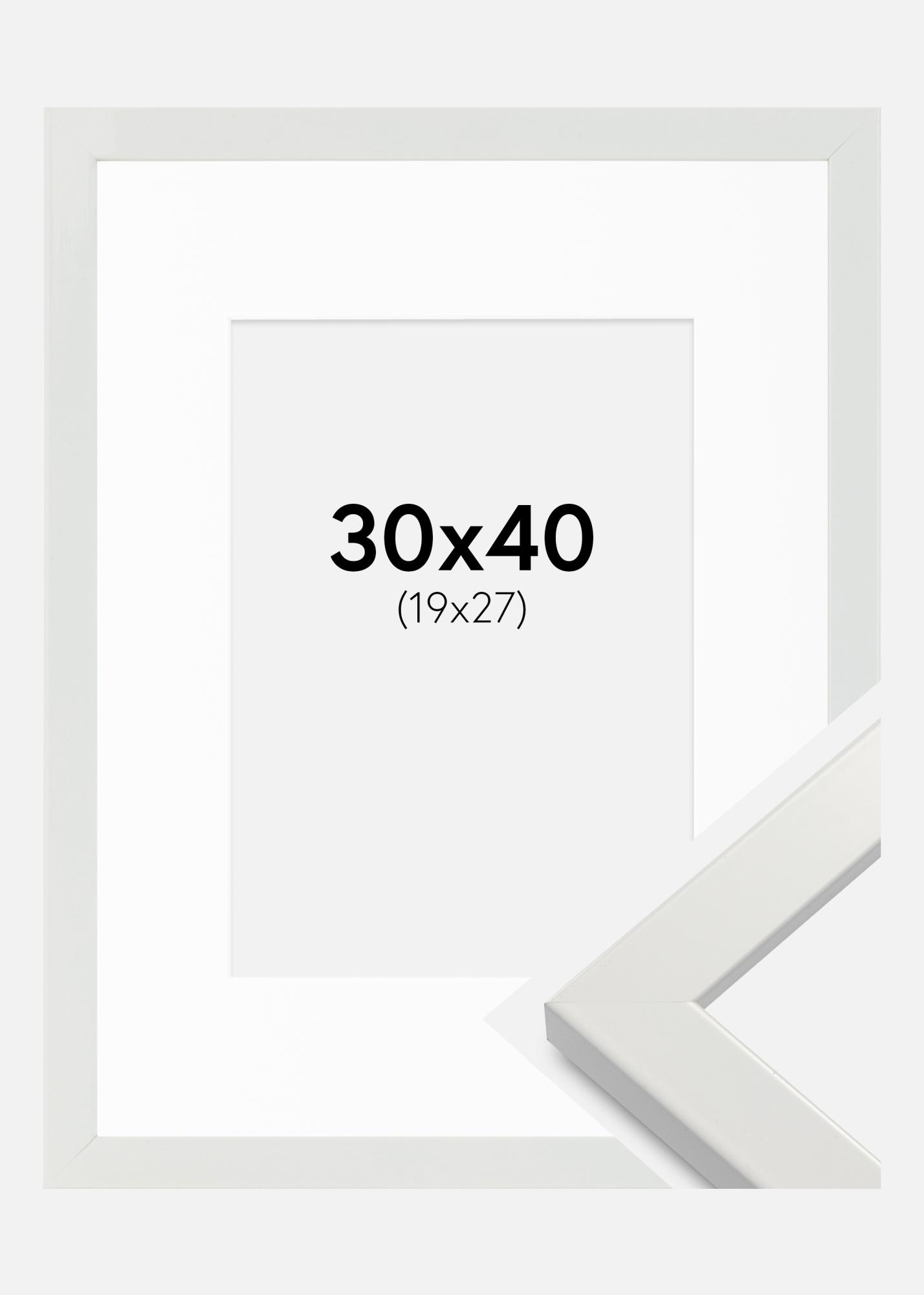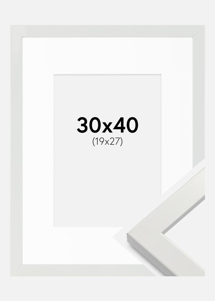 Frame White Wood Glossy 30x40 cm - Picture Mount White 20x28 cm