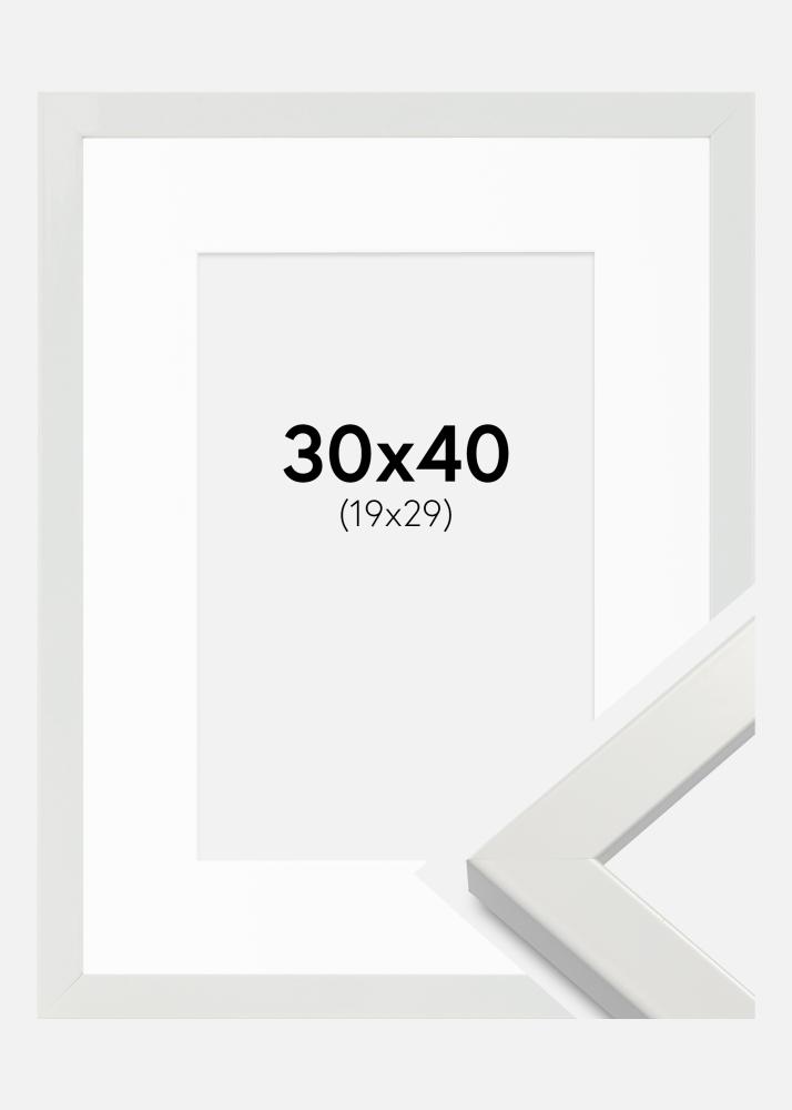 Frame White Wood Glossy 30x40 cm - Picture Mount White 20x30 cm