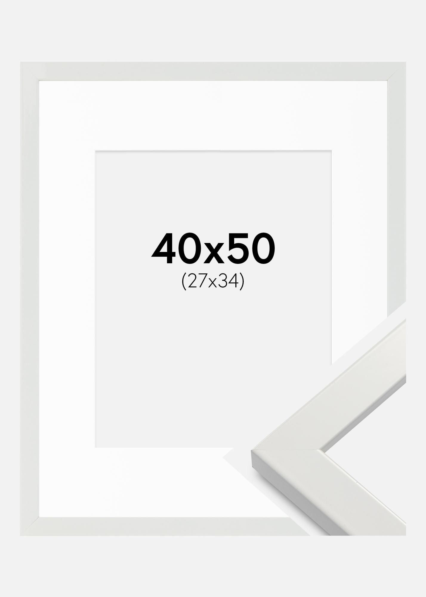Frame White Wood Glossy 40x50 cm - Picture Mount White 28x35 cm