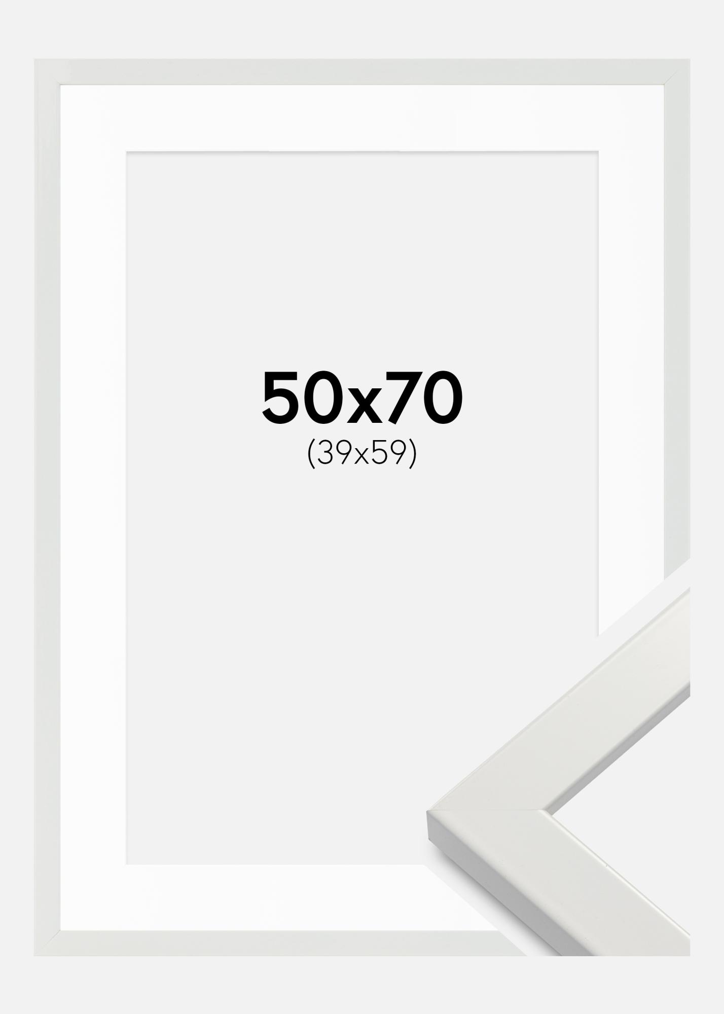 Frame White Wood Glossy 50x70 cm - Picture Mount White 40x60 cm