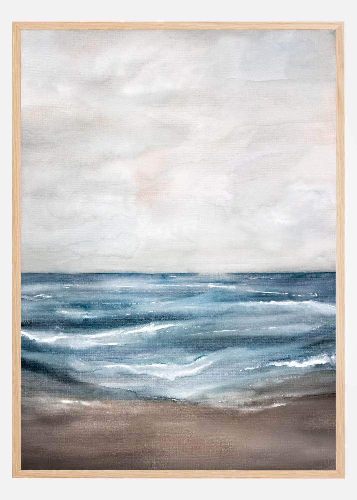 A wonderful watercolour painting of a rough sea and a light grey sky. A nostalgic yet powerful painting, highlighting the strength and power of the sea. The brown sea in the foreground adds that extra touch of colour to create a stormy atmosphere. Feel the sea breeze when you hang this print.