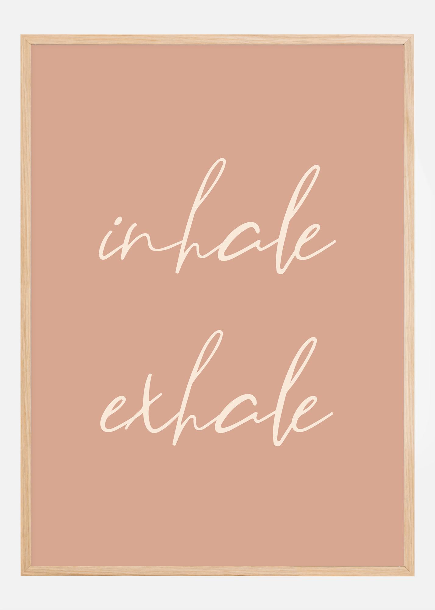 This clean and calming poster, with the words "inhale" and "exhale" elegantly written, invites stillness and reflection in any space where it is placed. It is a constant reminder of the power of breathing and the inner peace that can be achieved through mindful presence. The soft background color in muted pink gives a relaxed and therapeutic impression that complements the flowing, handwritten words.