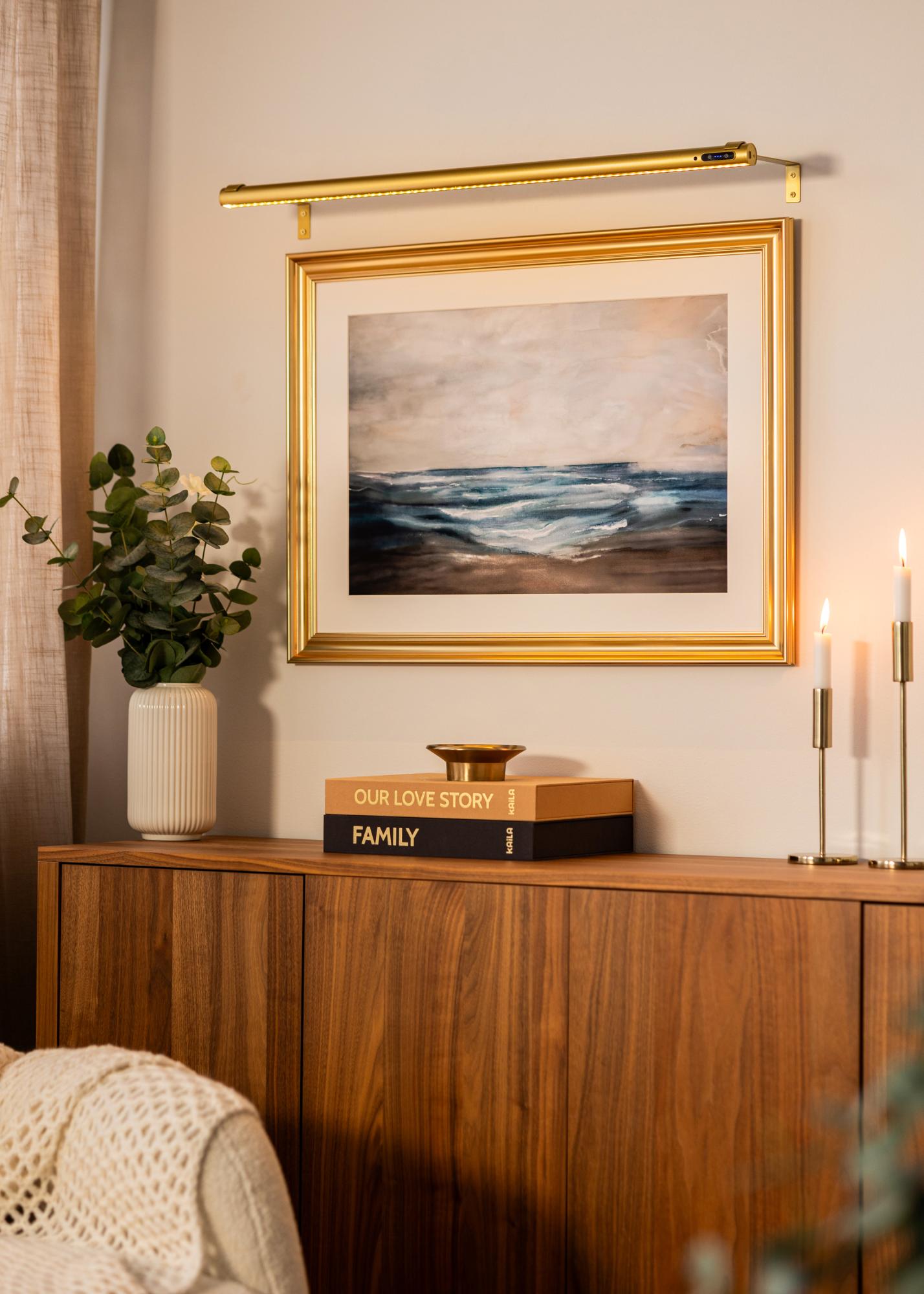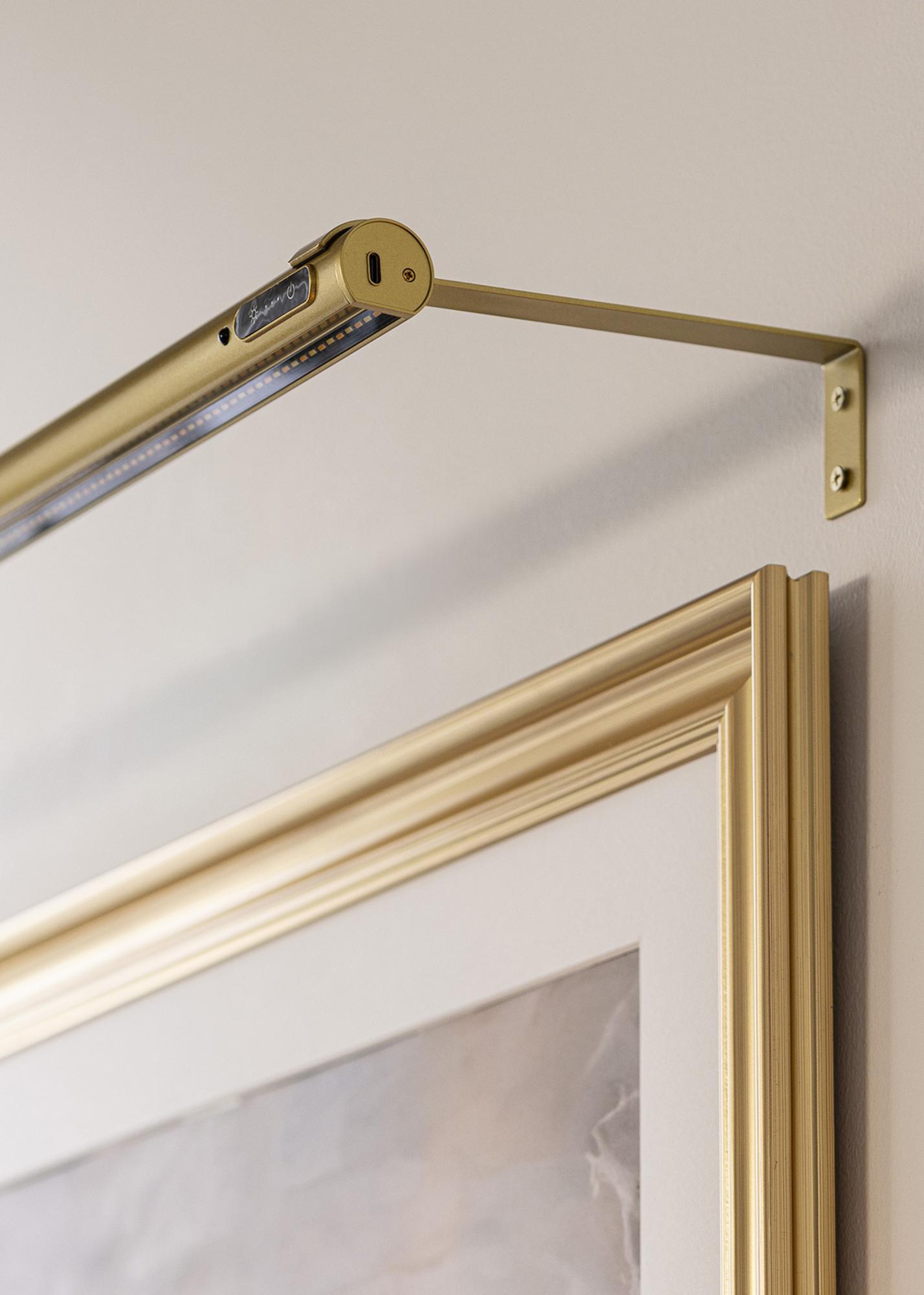Highlight your artwork with KAILA Brilliance – a stylish and battery-powered picture lighting that provides perfect lighting for your painting without cords! Thanks to its cordless design, it can easily be placed anywhere without having to consider electrical outlets. With its elegant gold finish and adjustable arm, it casts a soft and even light over your painting, beautifully highlighting details and colors. Easy installation and smooth use make this picture lighting an excellent choice for both home and gallery.