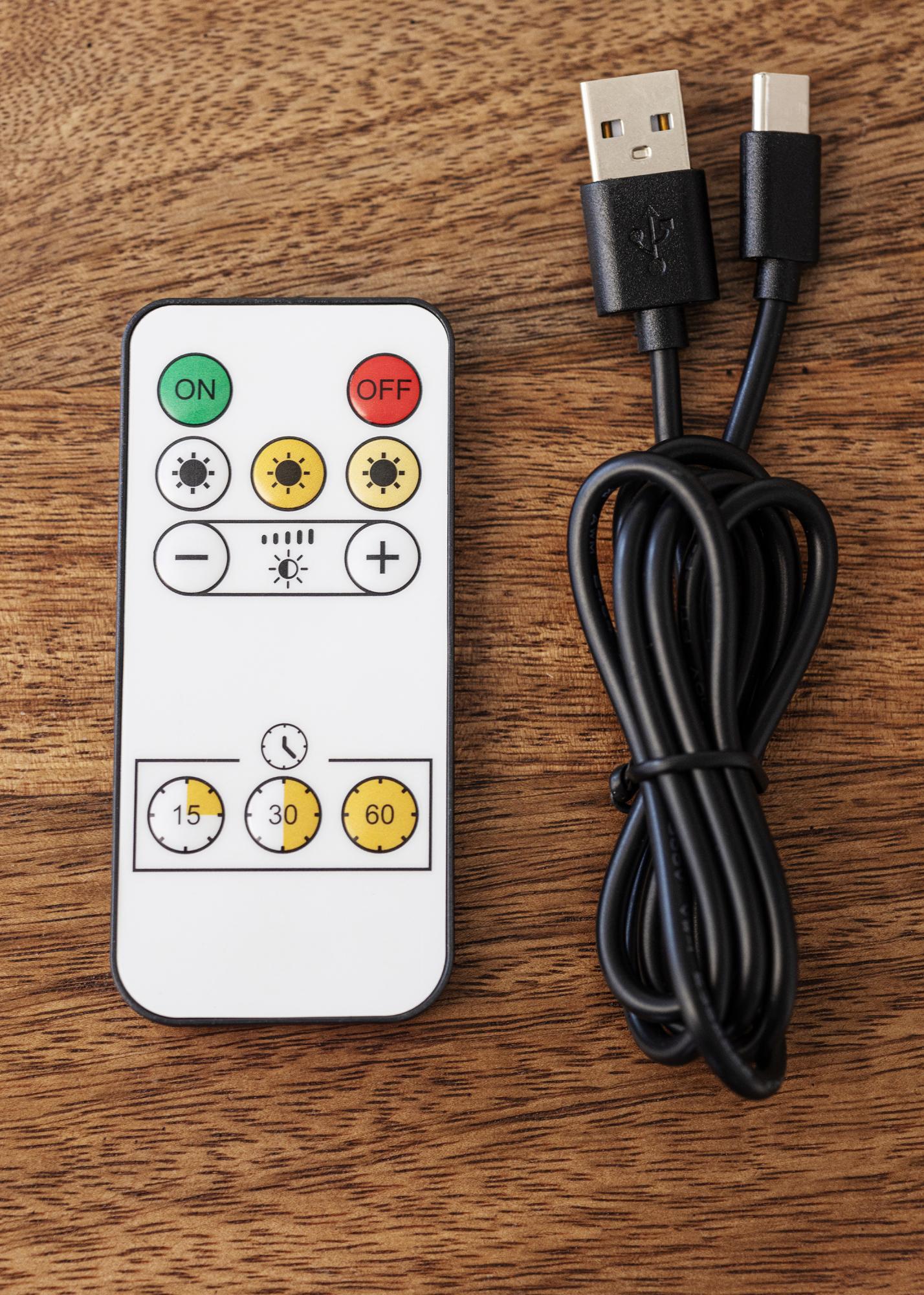 The matte black finish provides a sleek and modern impression that blends into most interiors. The lamp is controlled via a remote control that is included, and you can easily adjust the brightness or set a timer for automatic shutdown after 15, 30, or 60 minutes. This is a practical way to optimize battery life.
