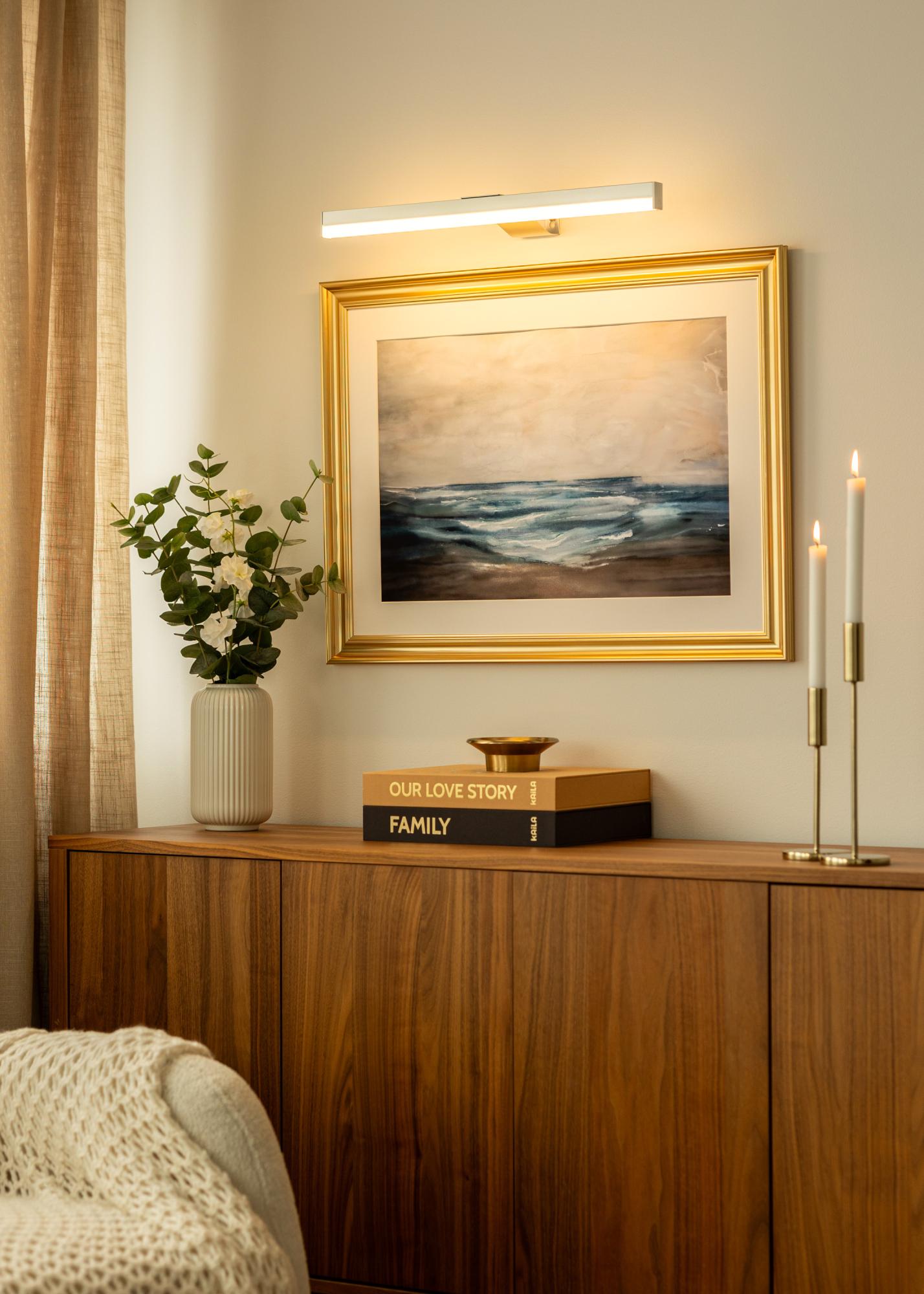 This battery-powered picture light offers a convenient and flexible solution to illuminate your artwork without the need for cables. Thanks to the battery-powered design, you can place the lamp anywhere, making it easy to add a stylish and elegant light point over, for example, a painting or a photograph. With a depth of 15 cm and a length of 55 cm, the lamp is perfectly suited to provide even lighting for images up to 80 cm in width.