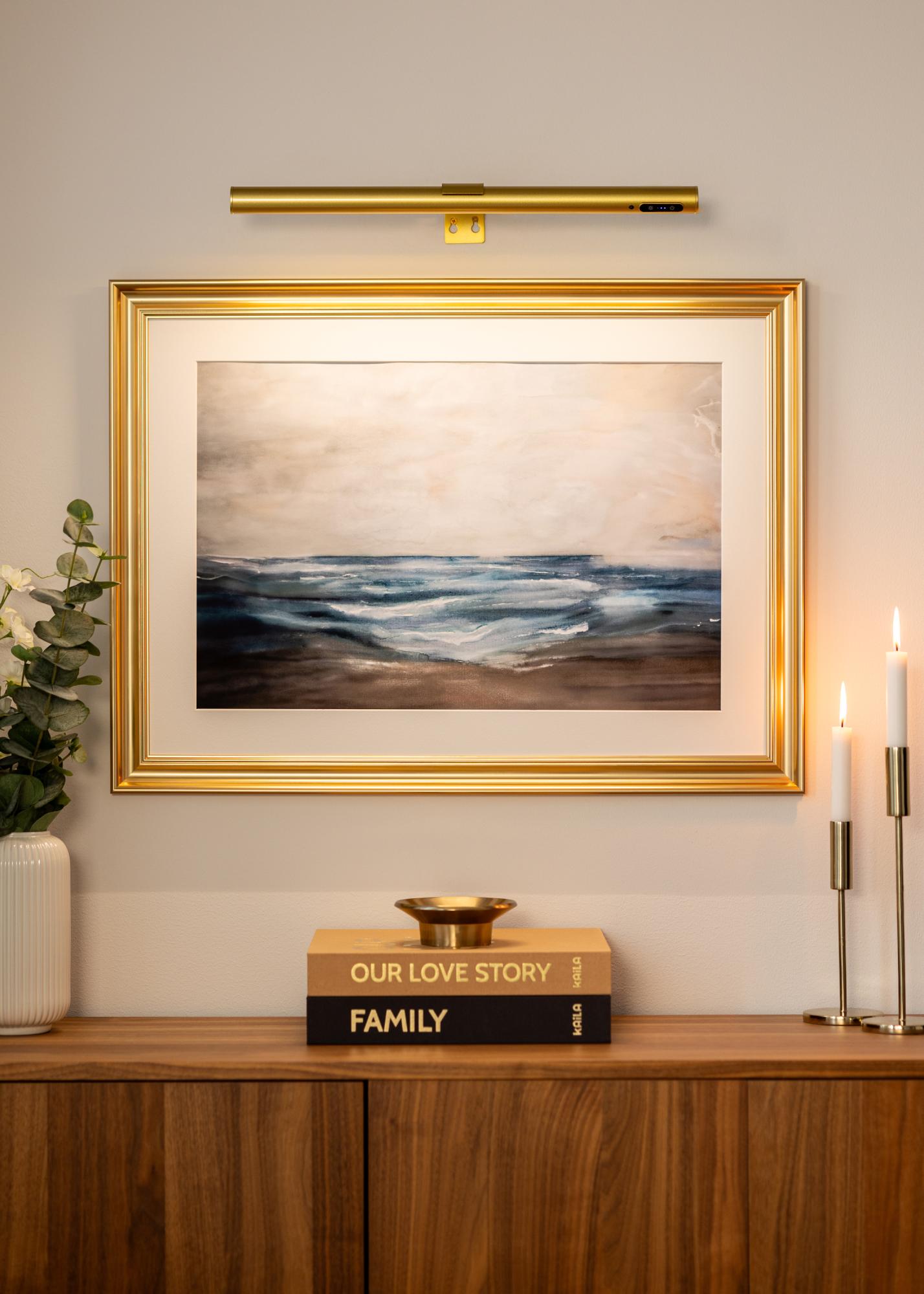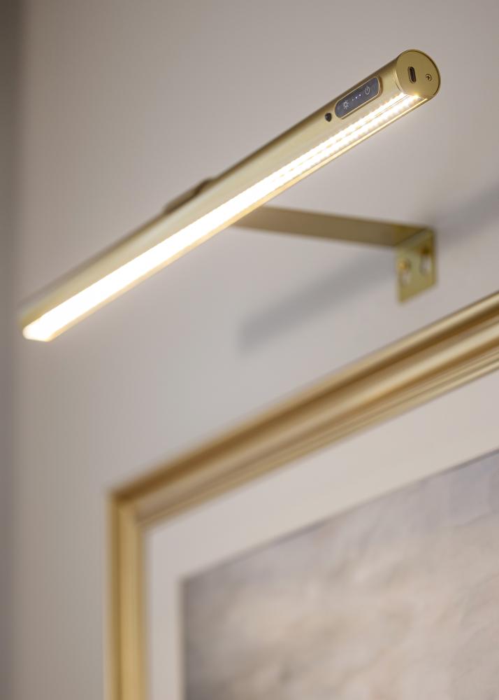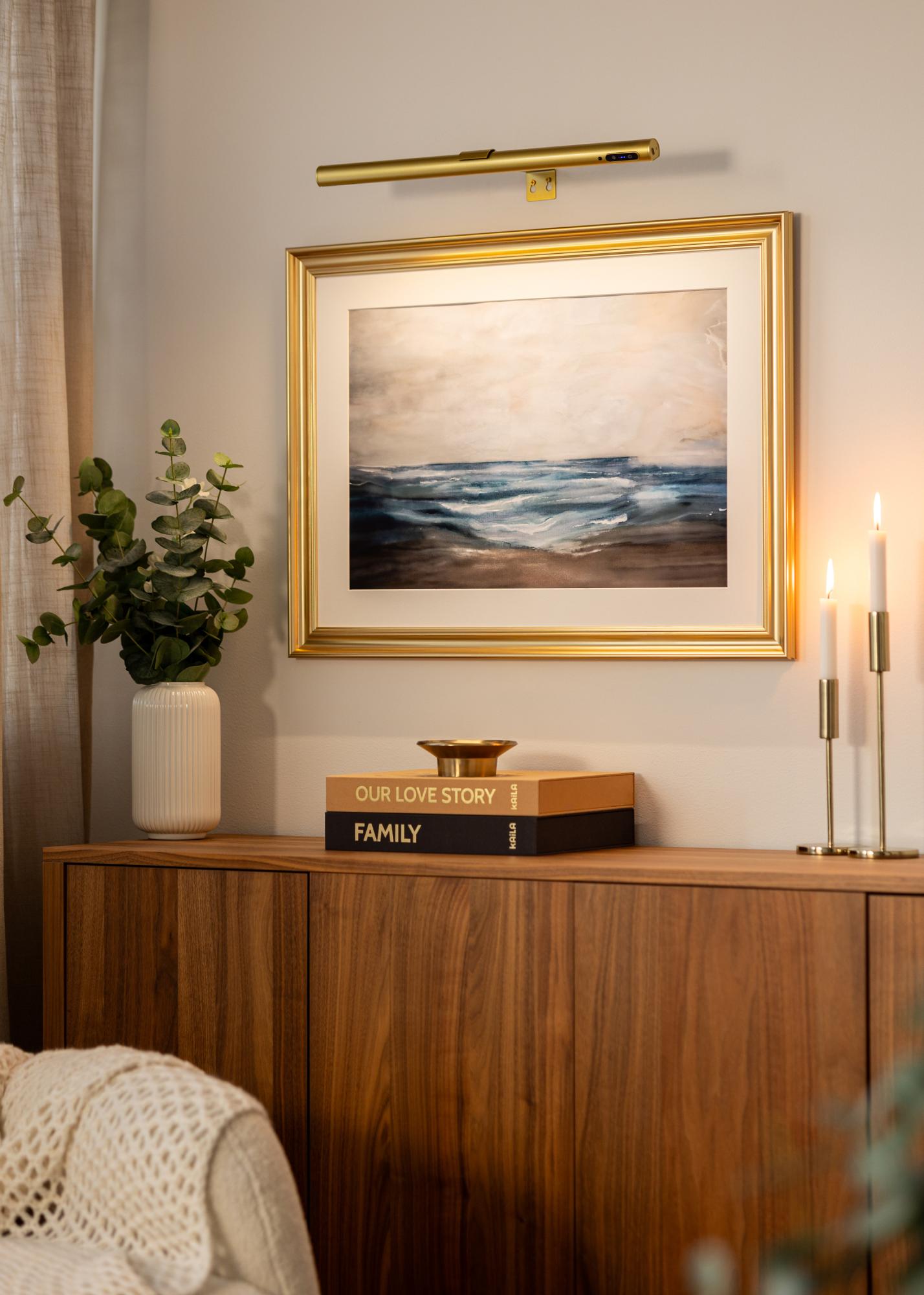 KAILA Halo is a stylish and battery-powered picture lighting in gold, perfect for illuminating your artwork without disturbing wires. Thanks to the wireless design, you can place it anywhere without having to consider electrical outlets. The elegant gold finish gives an exclusive expression, while the light spreads evenly to highlight details and colors beautifully. Easy to mount and convenient to use – a practical solution to give your paintings the attention they deserve.