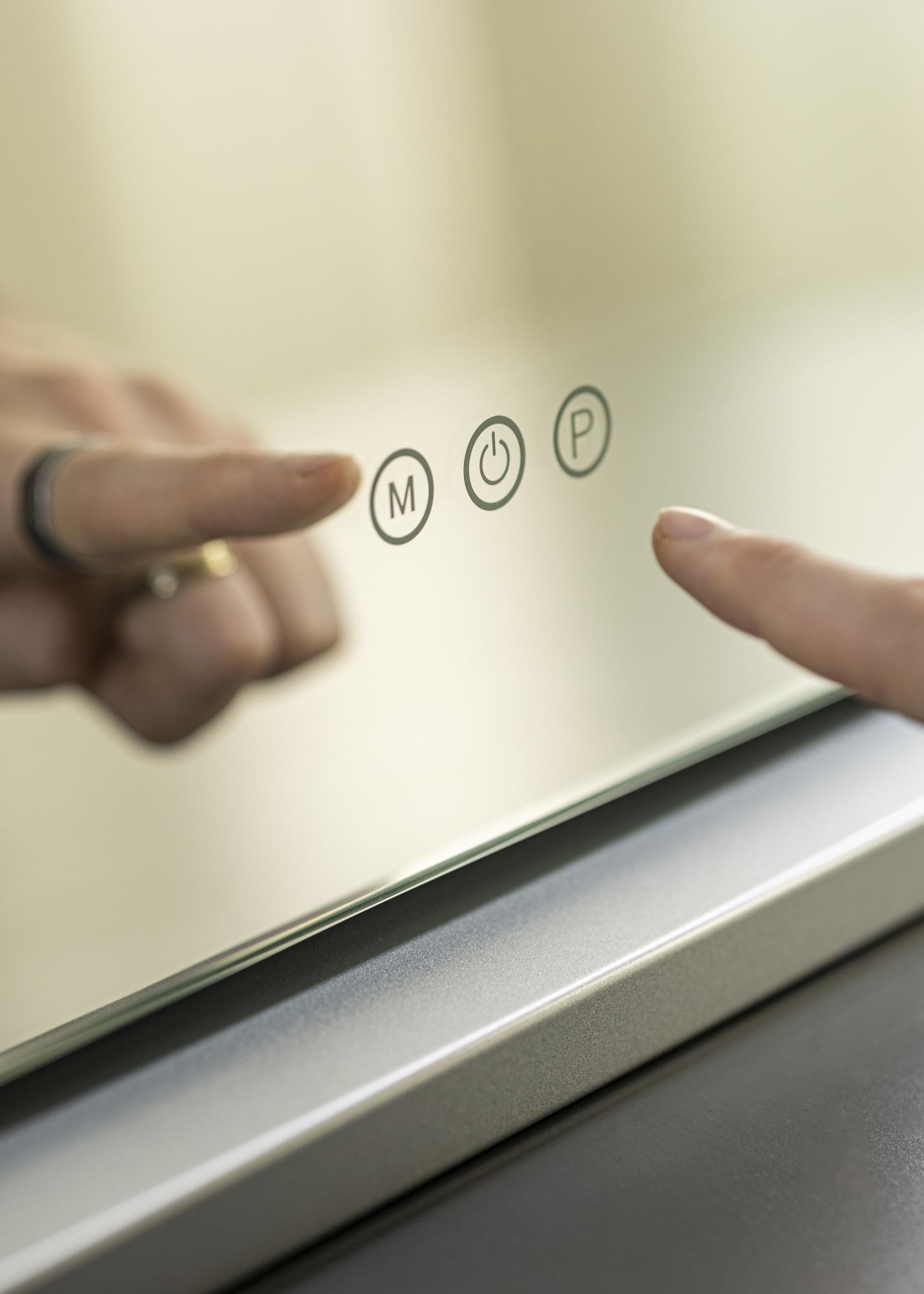 The mirror's lighting consists of LED diodes. The light sources are not replaceable but have a lifespan that corresponds to the product's life cycle. After 50,000h, the brightness is estimated to be reduced to about 50% of the original strength.