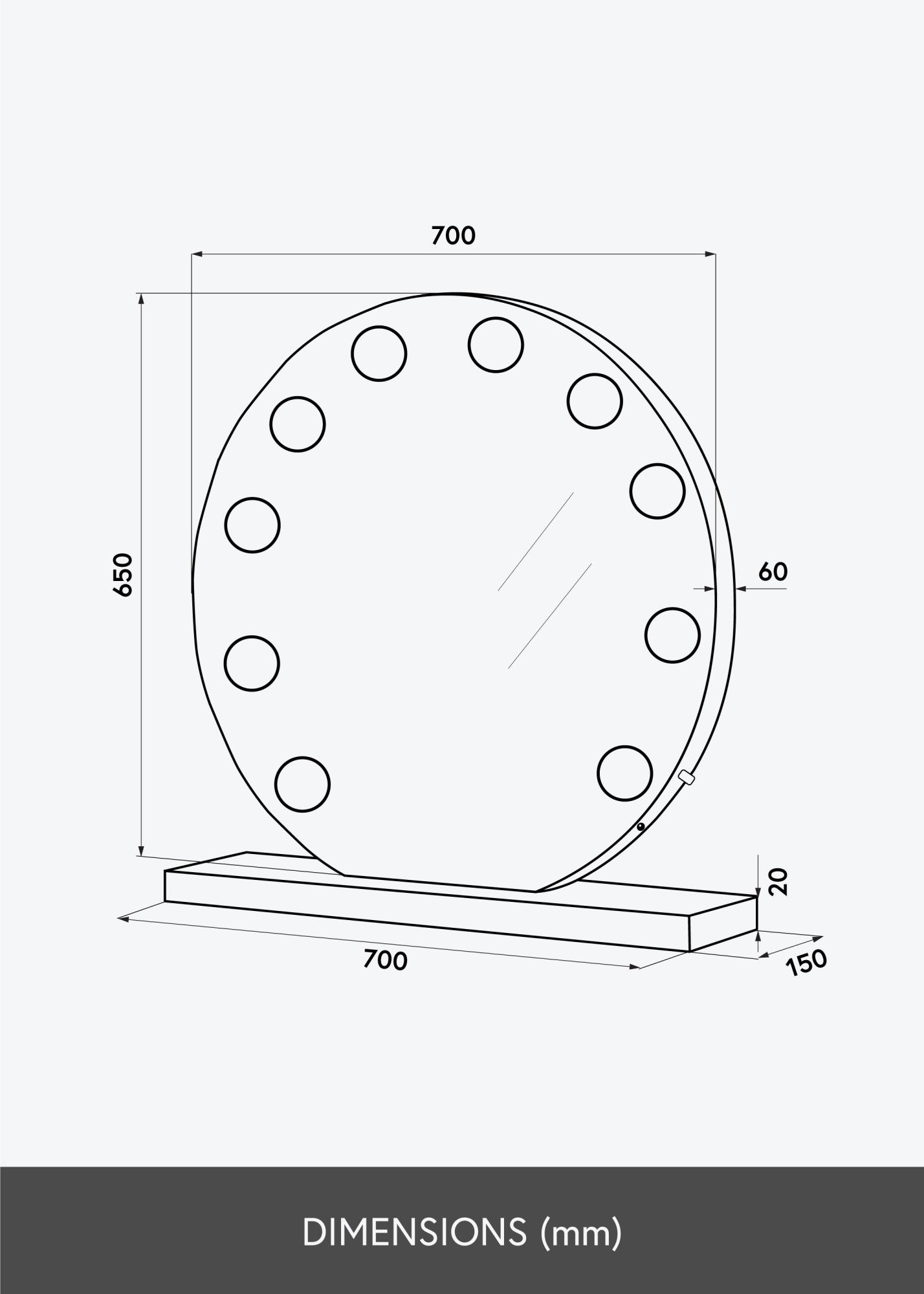 This makeup mirror is designed with its own stand so you can position your mirror on a table or a sideboard in whichever room you want. The large 80x65 mirror makes this a dramatic and eye-catching interior decor detail. This mirror is powered using a plug.