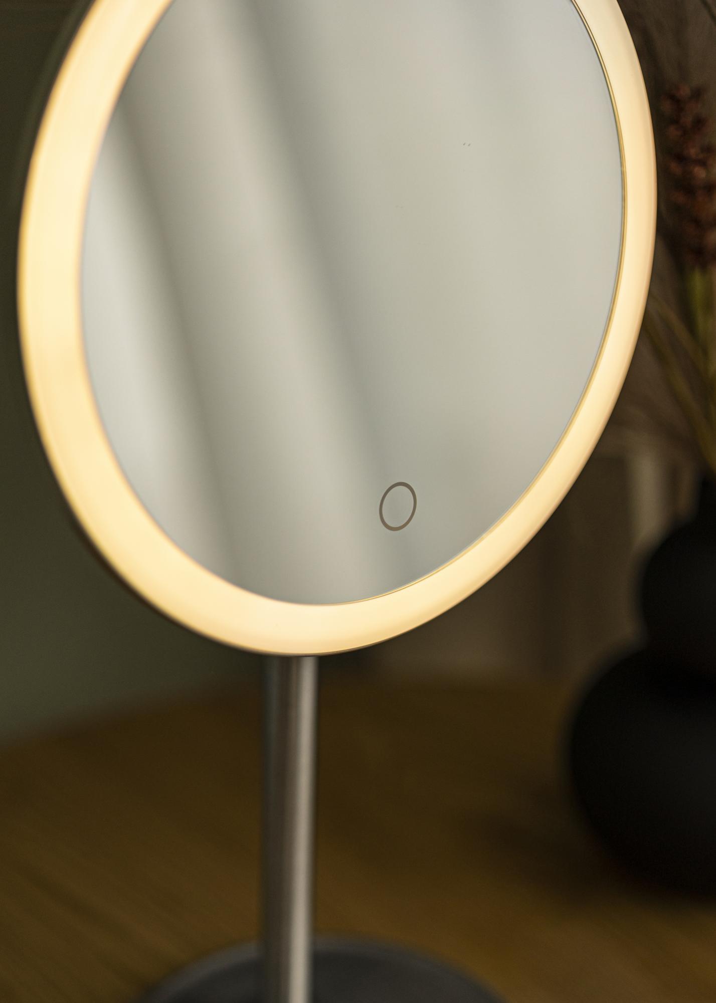 This is a classic bathroom mirror with LED lighting - perfect for when you need great lighting and clear focus. It’s easy to adjust the brightness and change the colour temperature of the integrated lighting. All you have to do to alter the light settings is hold down the touch button on the mirror for a few seconds. The mirror has an inbuilt battery that’s charged using the charging cable provided.