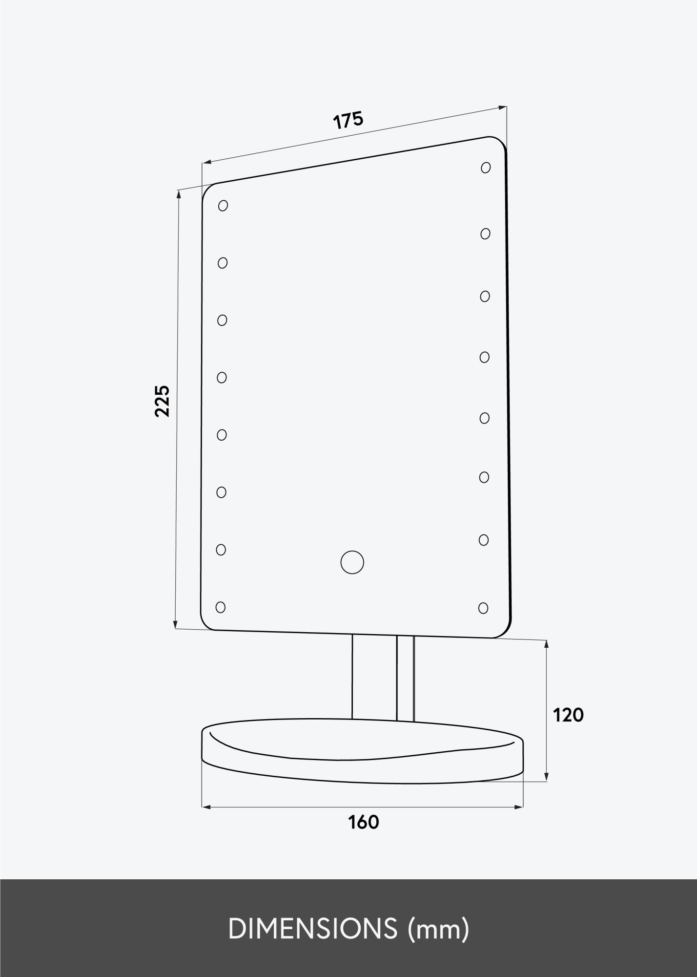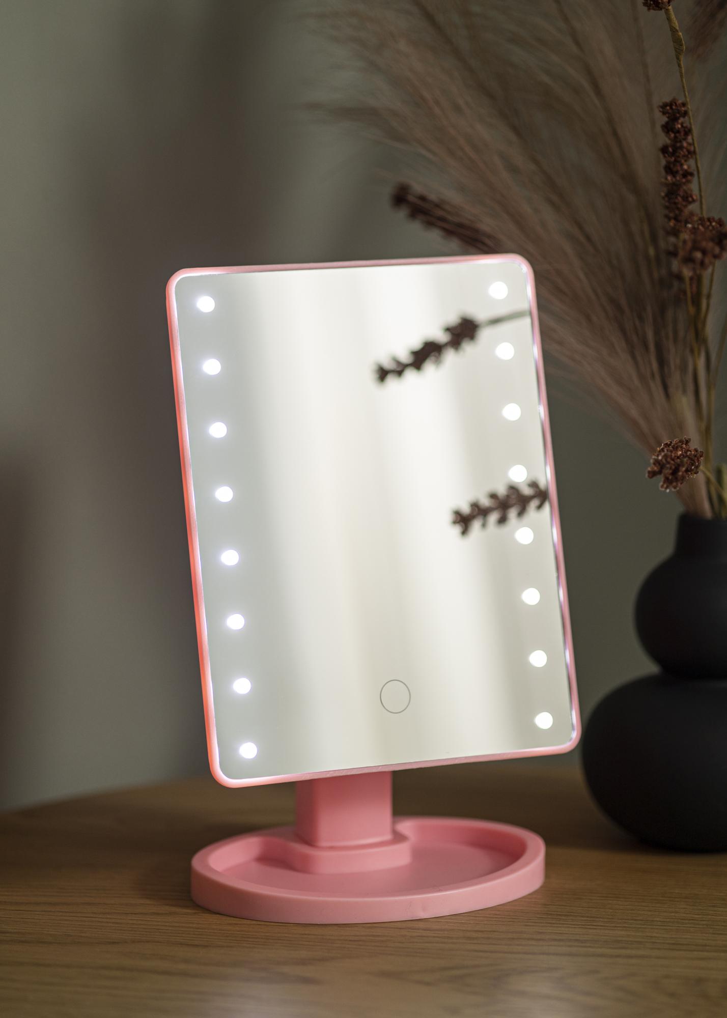 This makeup mirror is an excellent choice if you’re looking for a smaller mirror in a stylish design. The lovely shade of pink adds a splash of colour while the integrated LED lighting provides a cool, even white light perfect for lighting your reflection. You can turn the mirror on using the power button situated on the back of the device. The brightness can also be adjusted to whatever level suits you using the touch button on the front of the mirror.