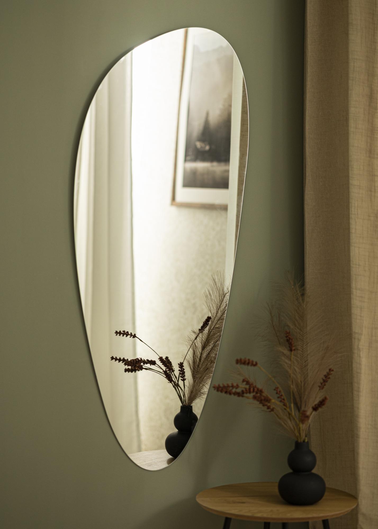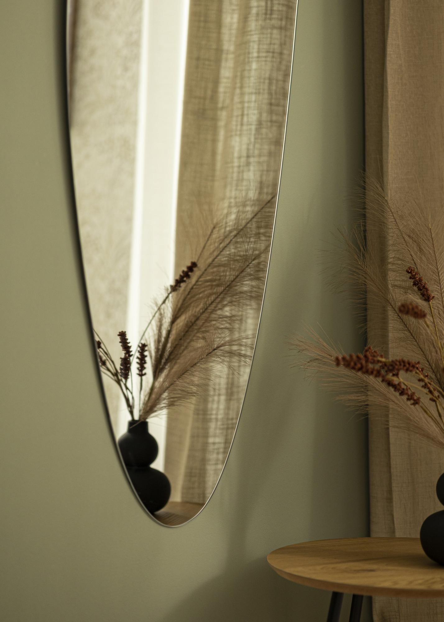 This wall mirror is minimalism at its best – with a frameless design and an asymmetric, elongated shape. The thinness of the mirror glass, at only 4 mm, further enhances the sleek minimalist feel.