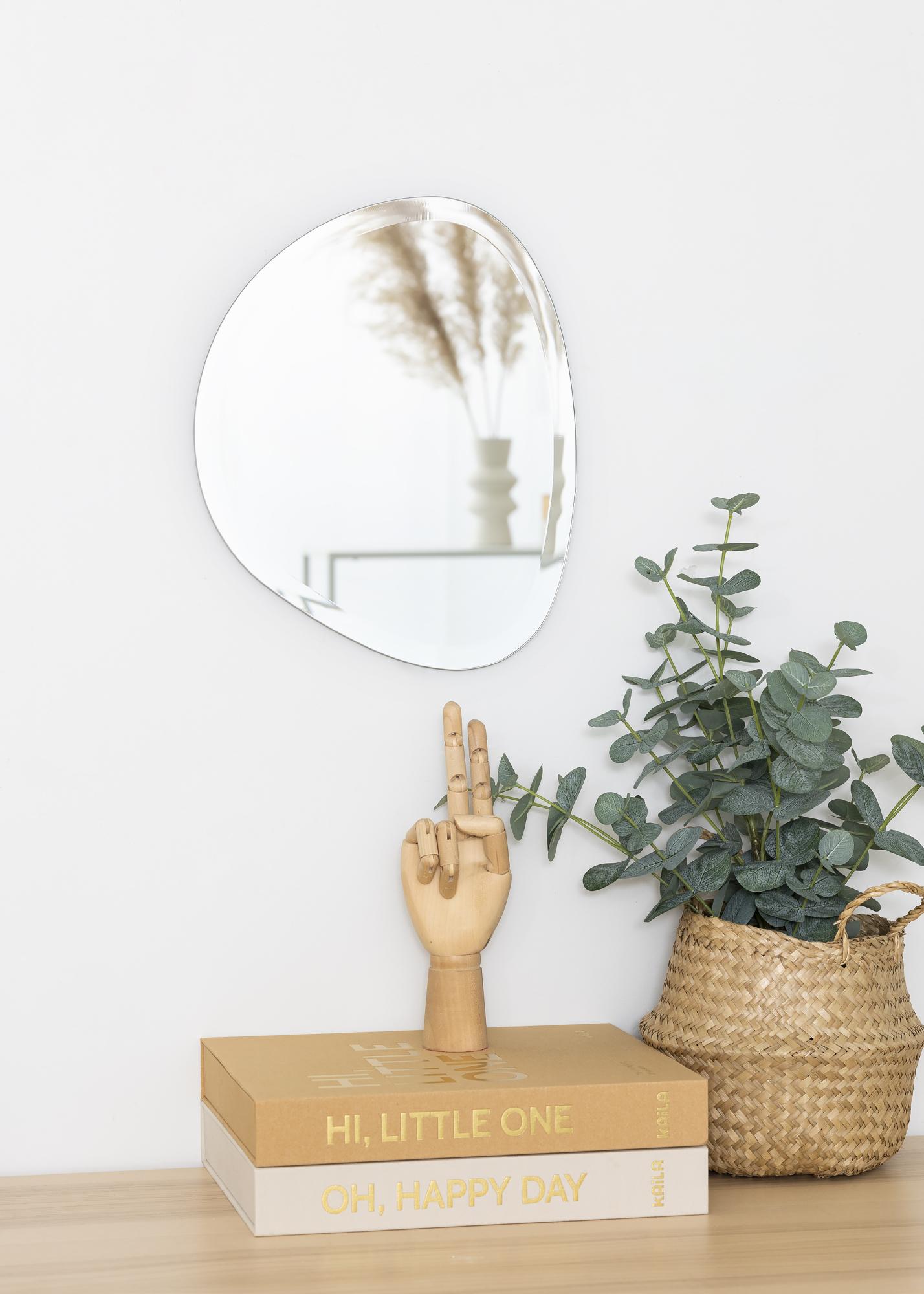 This wall mirror from KAILA has an elegant asymmetrical shape reminiscent of a tear or drop. The thin and unframed design of the mirror, combined with the faceted edge, creates a stylish and contemporary detail for any room. This eye-catching mirror will serve as a decorative focal point for any room, from the living room to the hall or bedroom. The mirror is 30x35 cm large.