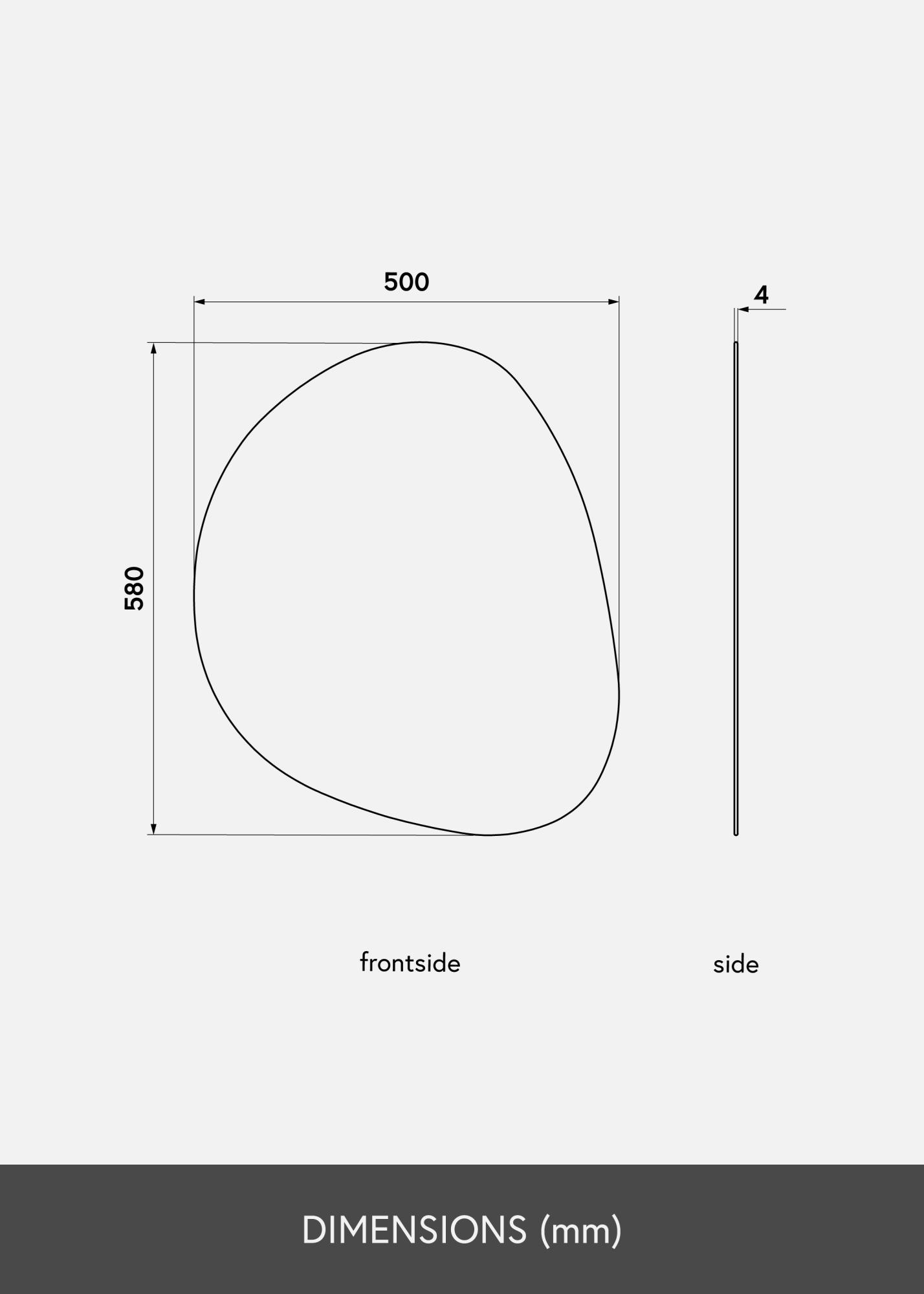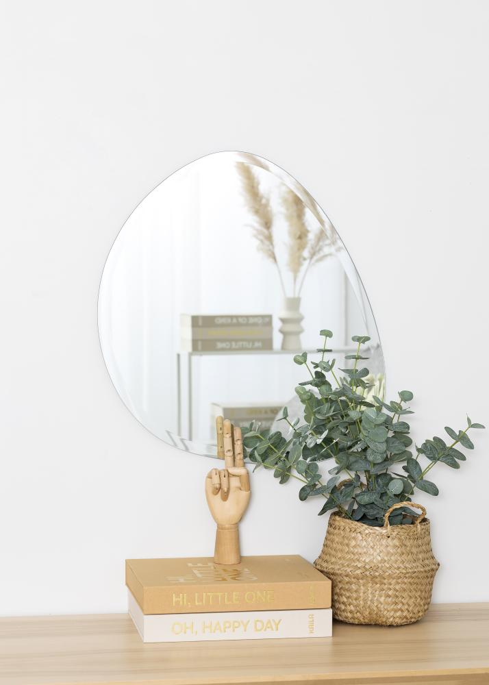 This wall mirror from KAILA has an elegant asymmetrical shape reminiscent of a tear or drop. The thin and unframed design of the mirror, combined with the faceted edge, creates a stylish and contemporary detail for any room. This eye-catching mirror will serve as a decorative focal point for any room, from the living room to the hall or bedroom. The mirror is 50x58 cm large.