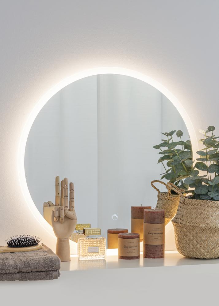 LED is an energy efficient light source that makes for an even and natural light - which means that this mirror works perfectly as a bathroom mirror and makeup mirror, or why not even a hall mirror? The mirror has a 100 cm diameter and is just 3 cm thin.