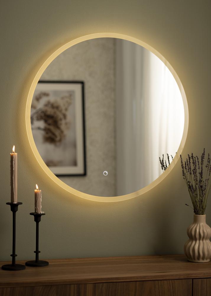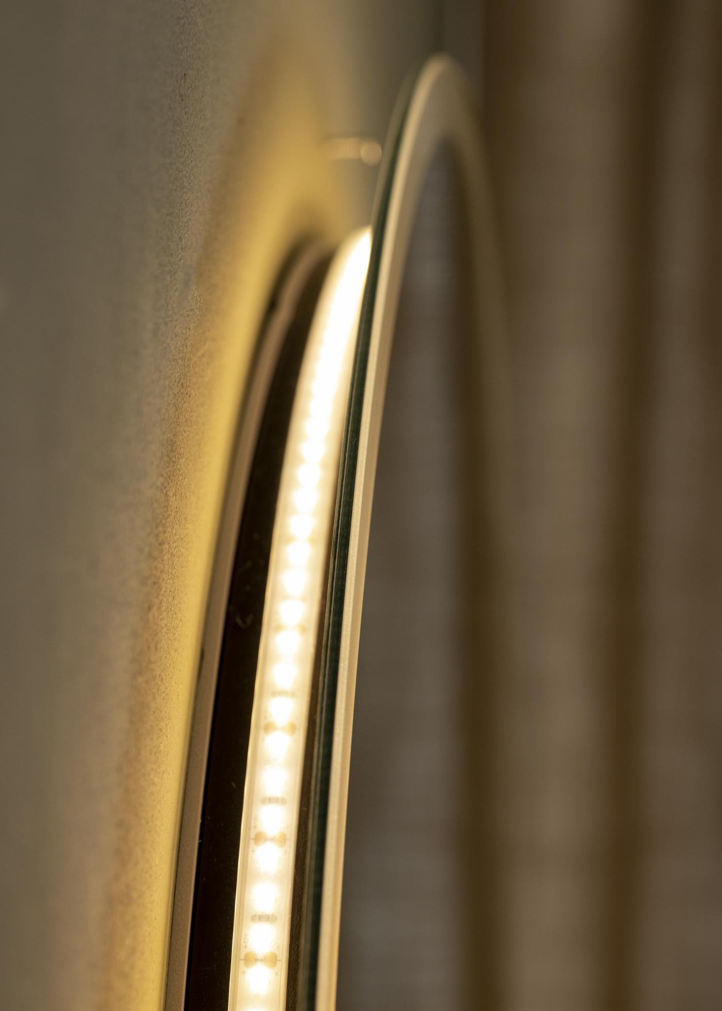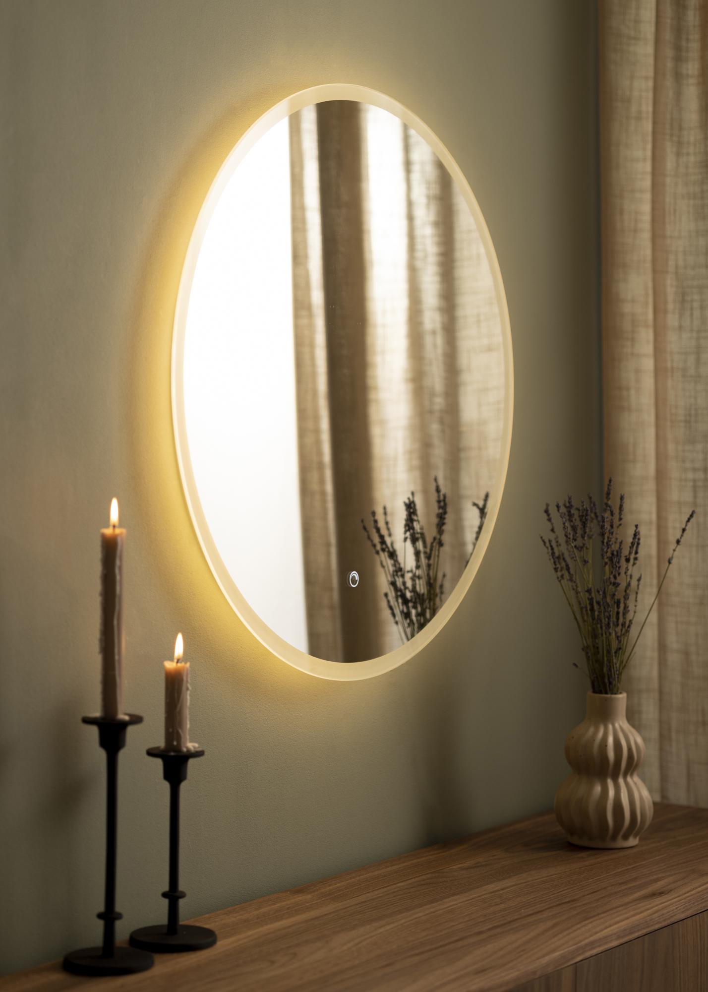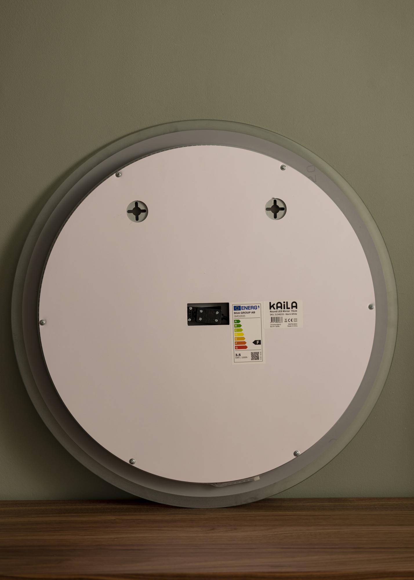LED is an energy efficient light source that makes for an even and natural light - which means that this mirror works perfectly as a bathroom mirror and makeup mirror, or why not even a hall mirror? The mirror has a 70 cm diameter and is just 3 cm thin.