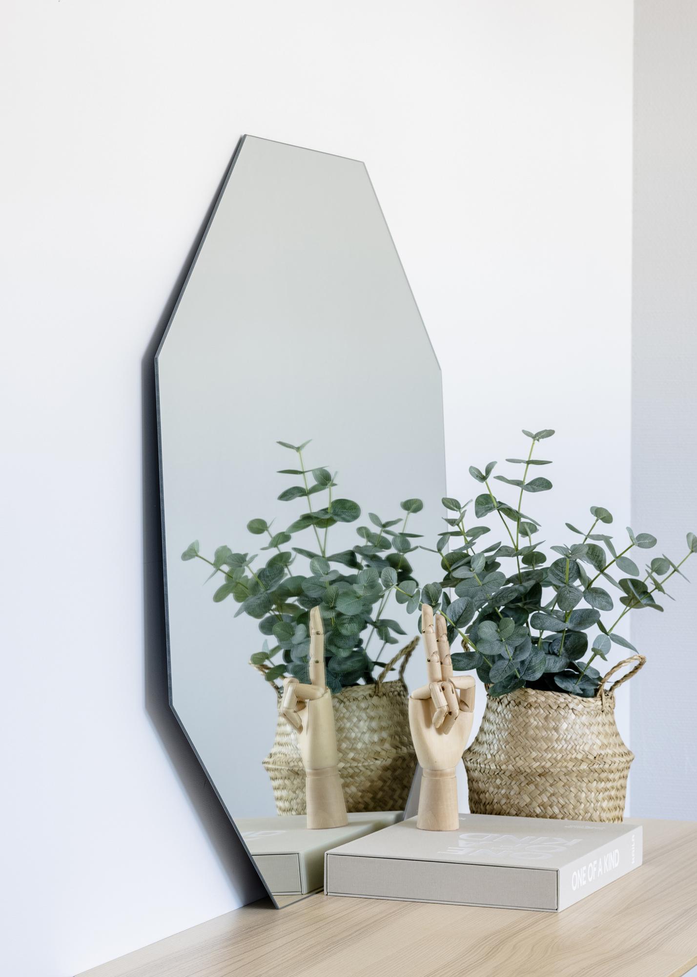 This stylish mirror from KAILA is perfect for the living room, hallway or bedroom. The mirror's octagonal and unframed design creates the perfect balance between minimalism and glamour. By mixing and matching different qualities, such as shapes and materials, you can create your own distinct interior design style, and this mirror can serve as a fantastic contrast to other items. The mirror includes a bracket for easy hanging on a wall.