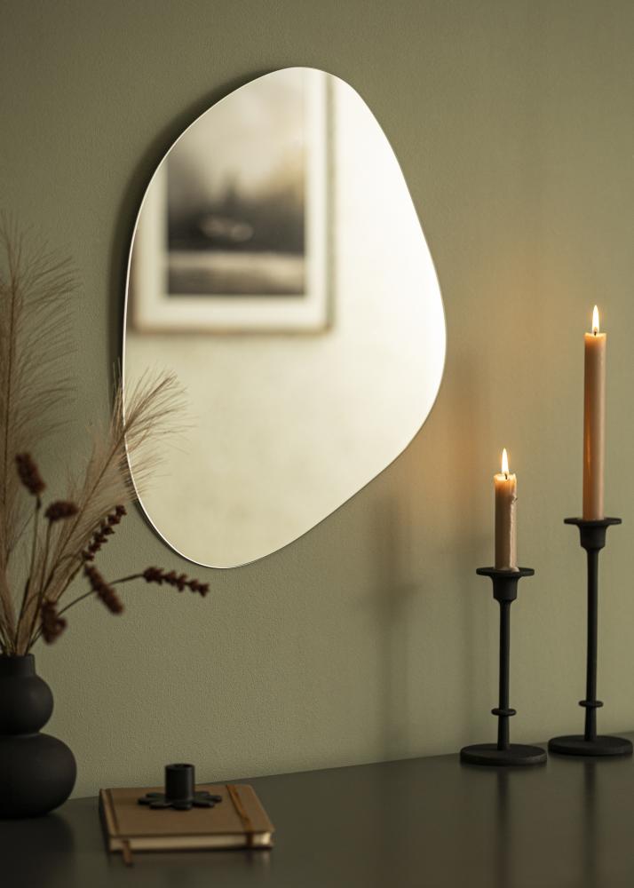 Are you looking for an elegant wall mirror for your home? Then this mirror is for you! The mirror features a frameless design and thin mirror glass of only 4 mm and a soft shape, which beautifully breaks off against straight lines in the rest of the decor.