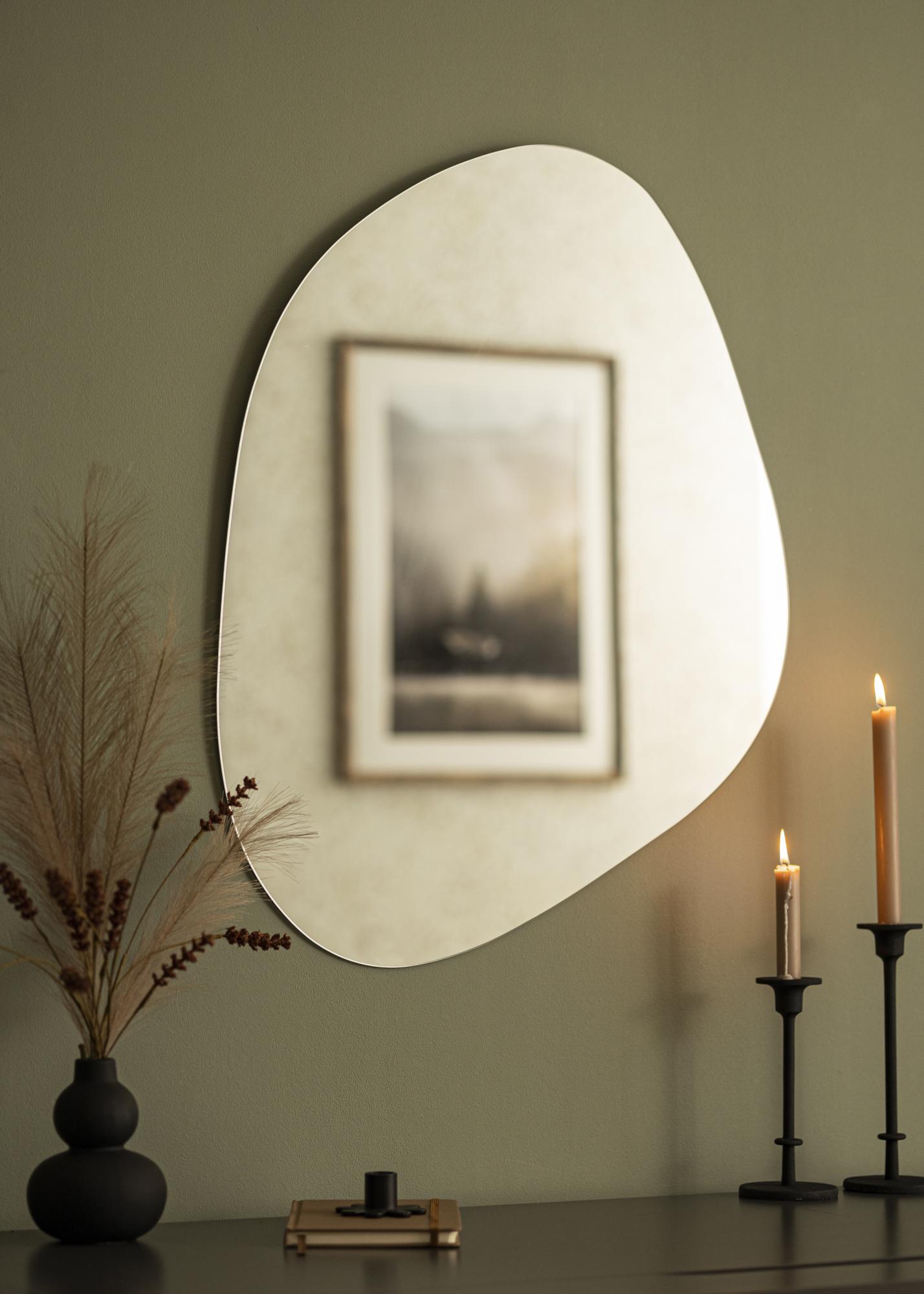 Are you looking for an elegant wall mirror for your home? Then this mirror is for you! The mirror features a frameless design and thin mirror glass of only 4 mm and a soft shape, which beautifully breaks off against straight lines in the rest of the decor.