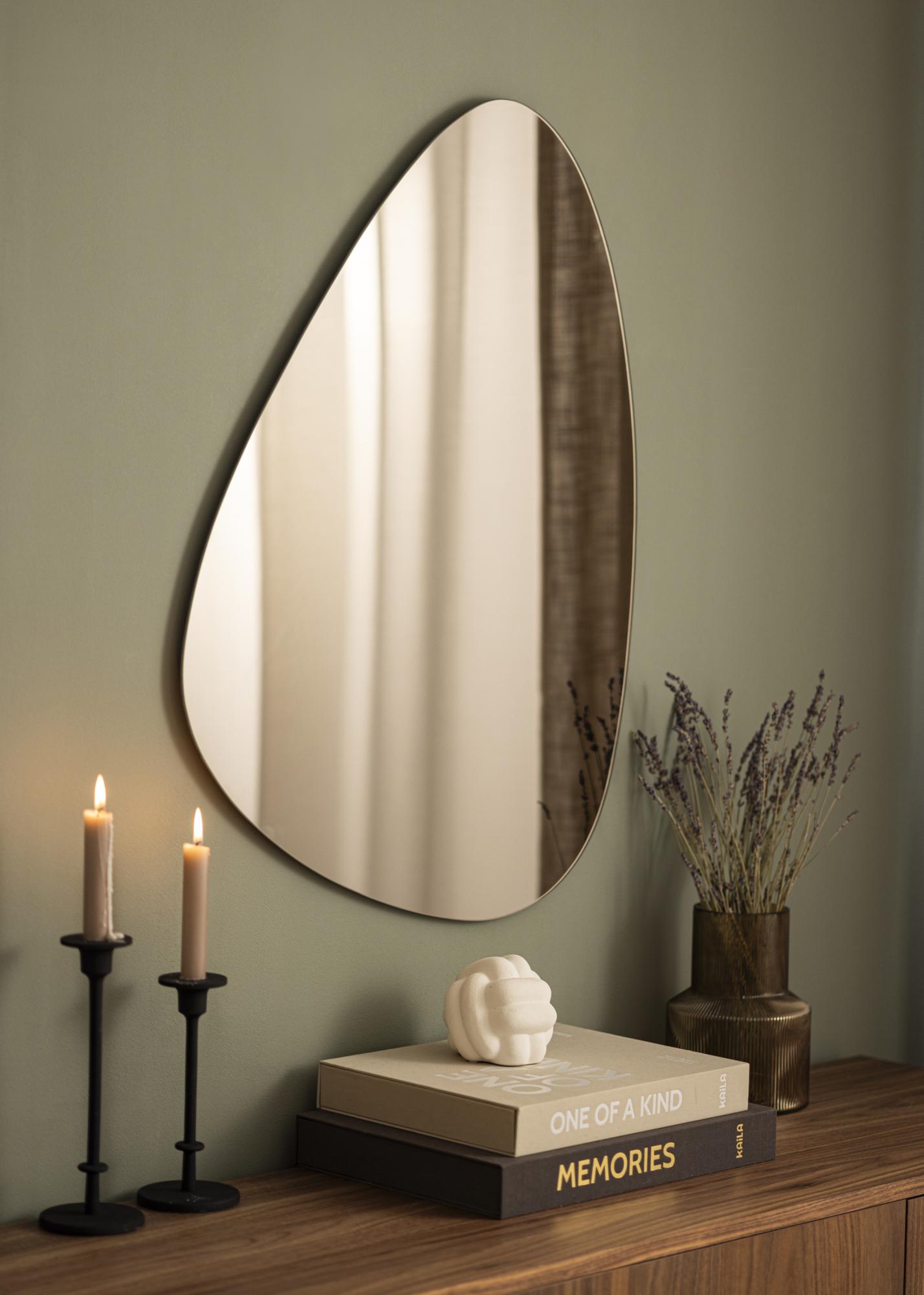 This asymmetric mirror is a stylish, trendy decor feature perfect for your home! As well as having an unusual and interesting egg-shaped design, this mirror accentuates its modern appearance with beautiful bronze tinted mirror glass. This exquisite colour harmonises effortlessly with a wide variety of different colour schemes. The soft frameless shape and thin, sleek mirror glass gives this mirror an elegant and tasteful look. It’s the perfect functional yet trendy wall decor for the living room, hall or bedroom.